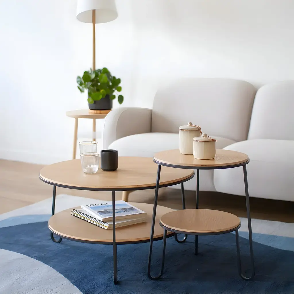 Anatole scales down Studio AC/AL's double-surface concept as a versatile side table. Paris designers Amandine Chhor and Aïssa Logerotis chose an airy metal framework to situate a tabletop and matching round shelf below in a choice of warm oak veneer, luxurious white marble or an allover blue-grey version. As decorative as it is useful, it functions as an occasional table when paired with seating or as a stand-alone piece to hold a houseplant or display an objet.