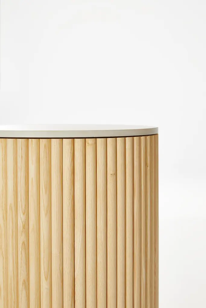 ANC-66 Side Table in Natural Ash Wood And Concrete by Heilig ObjectsDimensions: D 44 x W 44 x H 48 cm.Materials: Ash wood and alabaster white concrete top.Daniel Heilig. A young Hungarian-German designer, charismatic artist and creative cosmopolitan. Born in Budapest, he has half of Europe in his genes. Childhood days in rural Hungary were marked by Soviets and poverty. Before growing up in renewed, modern Germany, to begin again from nothing, a foreigner without a nest. Heilig’s life’s journey, a constant change of worlds. The quest for authenticity, identity and balance forever shapes this virtuoso’s work.For the doubter and perfectionist, principles and expectations are bad. They hinder, torment and harass the designer. Focusing on one thing or doing something twice is to find himself bored. Daniel Heilig is driven to move forward. To discover new things intuitively, interdisciplinarily, experimentally. Finding redemption and inspiration in the infinite beauty of the moment.The designer’s thinking, ideas, and creative impulse are without bounds. Everything fertilizes the other. Photography, music, fashion, furniture design. His creative plurality unites the pursuit of beauty in a philosophical sense. From this insatiable longing, Daniel Heilig creates uniquely exquisite, time-honored functional art, designs in which beauty may express itself fully.