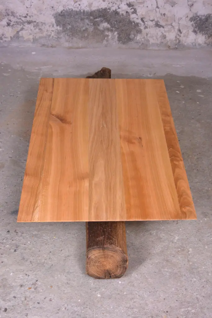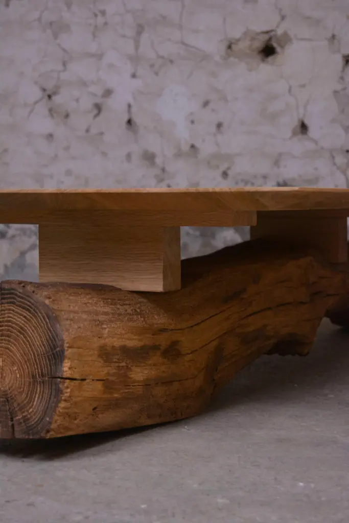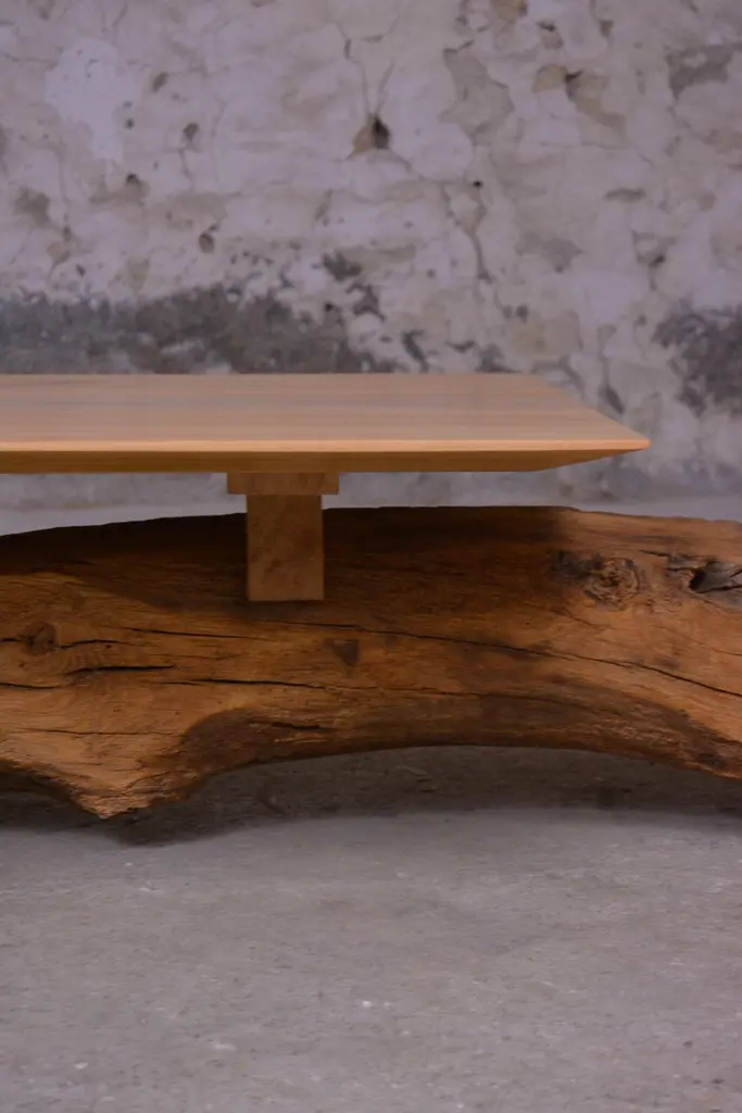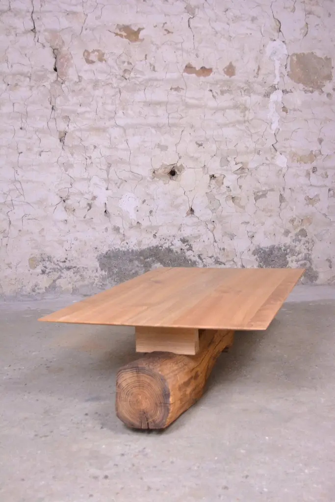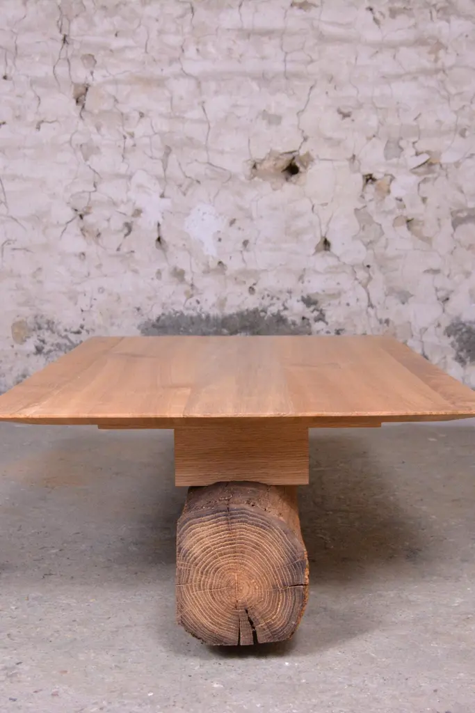 Ancient Normandy oak new designed side table by Timothée Musset Numbered limited edition piece, the singular story of ancient wood and the hand-sculpted work creates particular finitions, making each piece unique.Measures: Length 103 cmWidth : 64 cmHeight : 30 cmTotal length: 155 cmWood: Old construction oak from Normandy or Ile-de-France,massive oakFinishing : beeswaxTimothée Musset invite you to share our contemplation of antique wood.We value it by shaping this material into contemporary forms that reveal a wealth ofdetails.From the tree to the wood, a force of nature becomes a material.Wood pursues the life of a tree in a temporality that exceeds our existence and forces our contemplation. It is a witness of local history and its unique grain and pattern evidence this history.The wisdom, this beauty, is all the more visible in wood used for woodworking and carpentry.