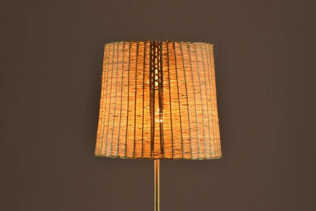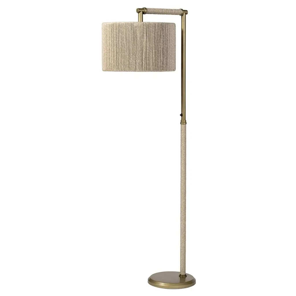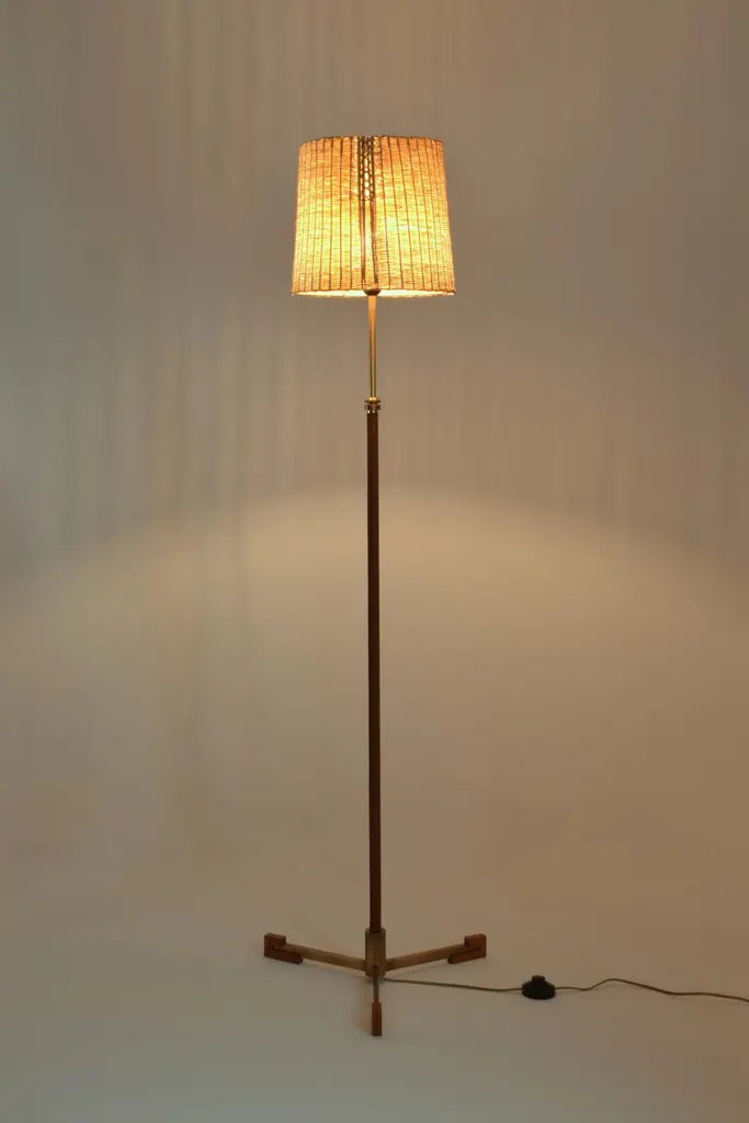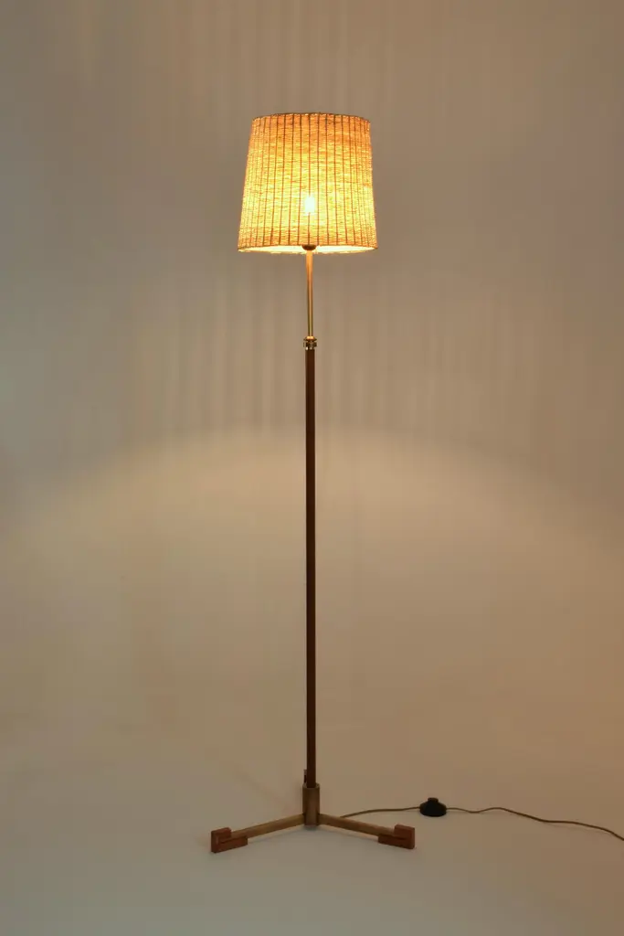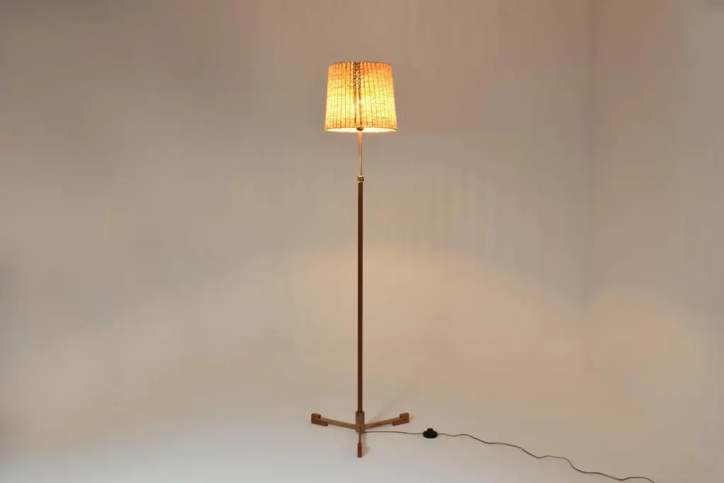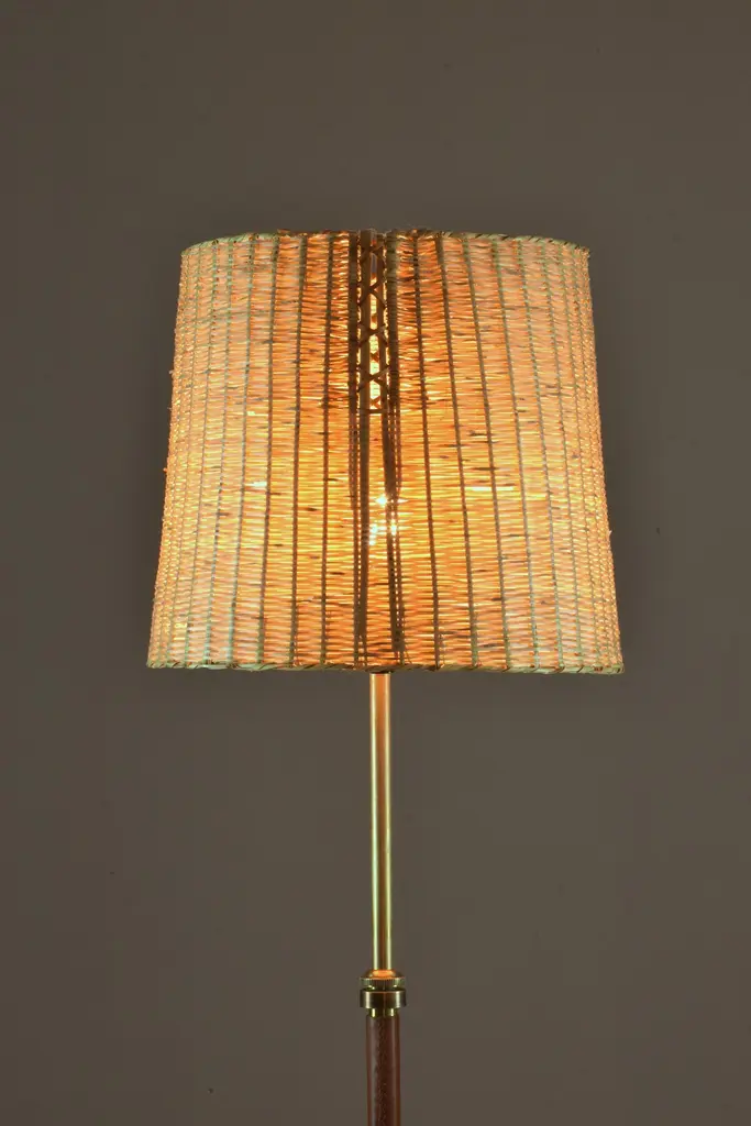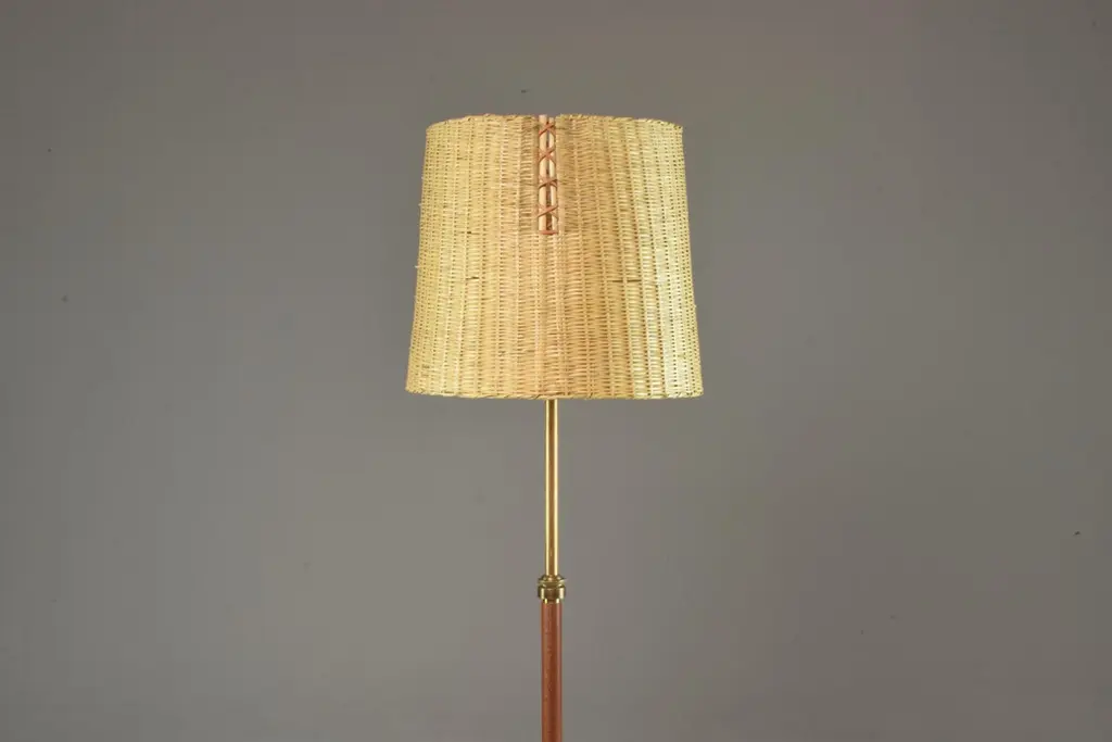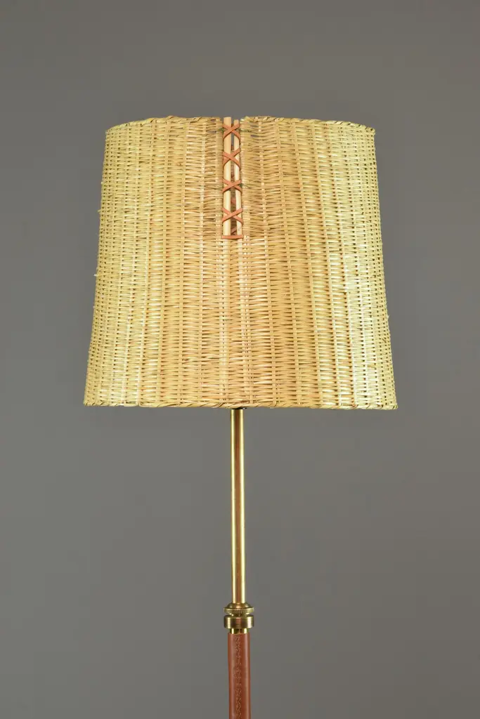 Ancora-T Contemporary Adjustable Leather Brass Wicker Floor Lamp