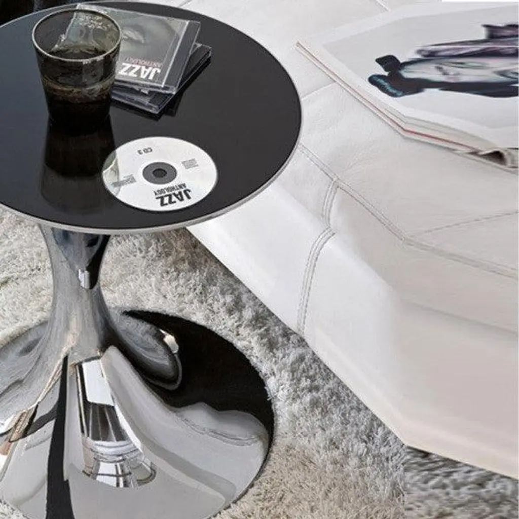 Andorra Designer Side Table is not only the perfect complement to any contemporary living space, but also an attractive design element that flatters any interior décor. Manufactured in Italy by Tonin Casa, Andorra Modern Side Table features a round table top and a round base connected by a curvilinear pillar. The frame of Andorra Side Table is available in matte black, white or champagne colors, while its table top can be ordered in black, white or champagne colored, hot-painted, tempered glass.