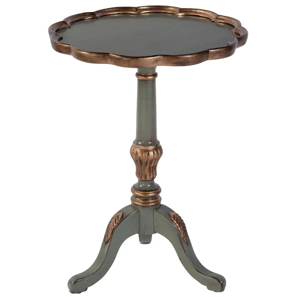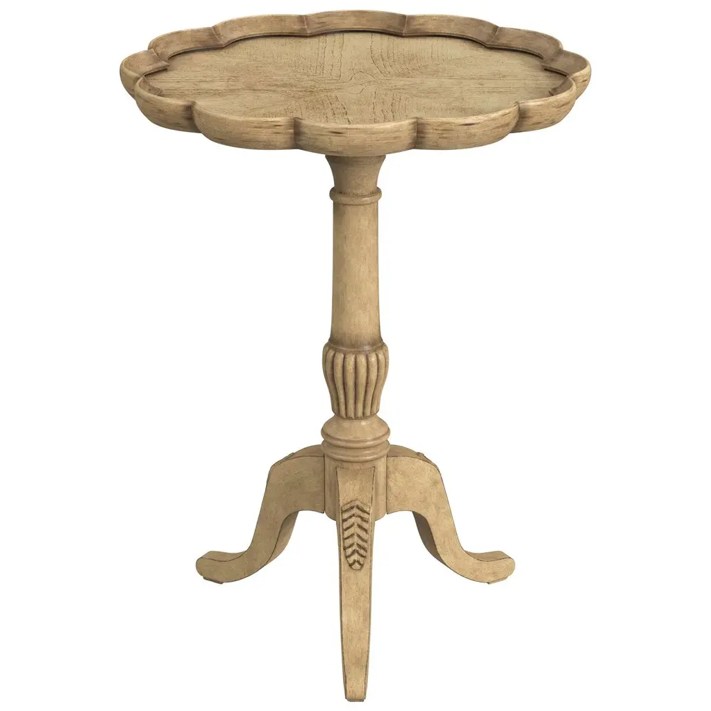In the quiet corners of your home, where elegance meets functionality, this exquisite table finds its place. Crafted with love and precision, it stands as a testament to timeless beauty, made from the finest materials. The table top, with its distinguished scalloped edge, rests gracefully upon an immaculately turned pedestal, supported by four intricately carved legs. It is more than just a piece of furniture; it is a romantic whisper of sophistication, ready to complement any small space with its charm and grace.