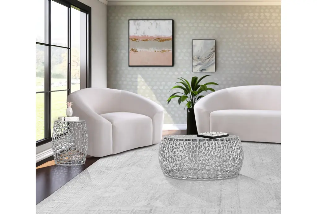 Andrea Modern Silver Metal 18" Round Pierced End Table