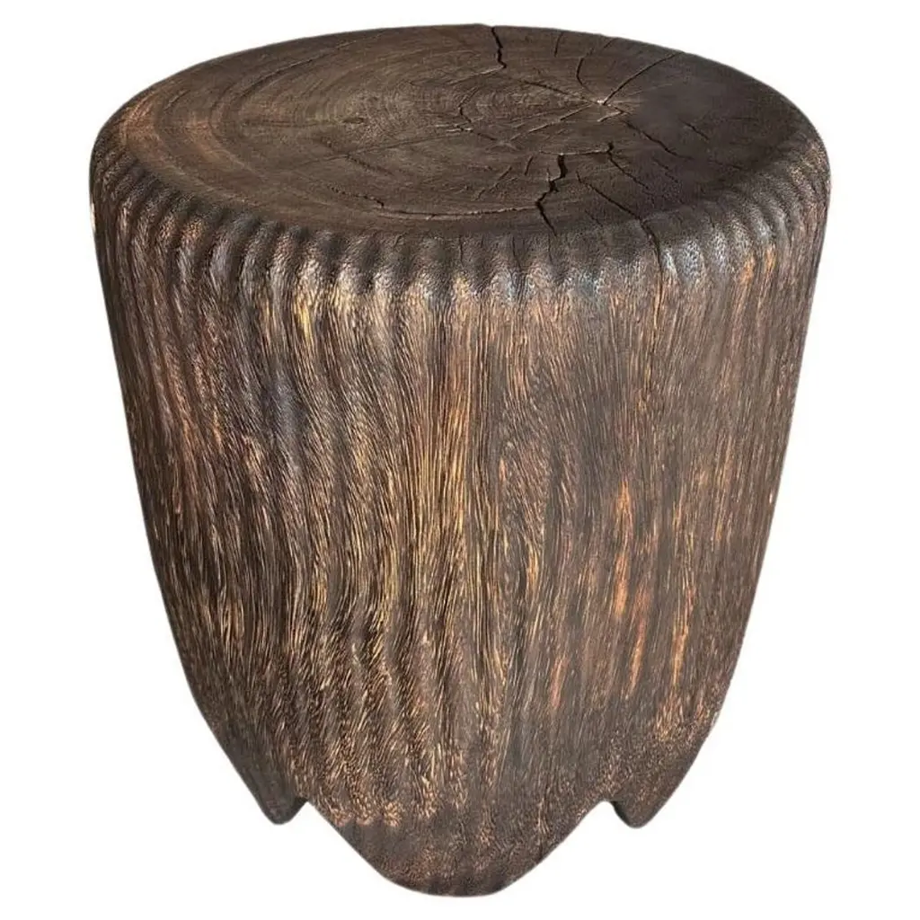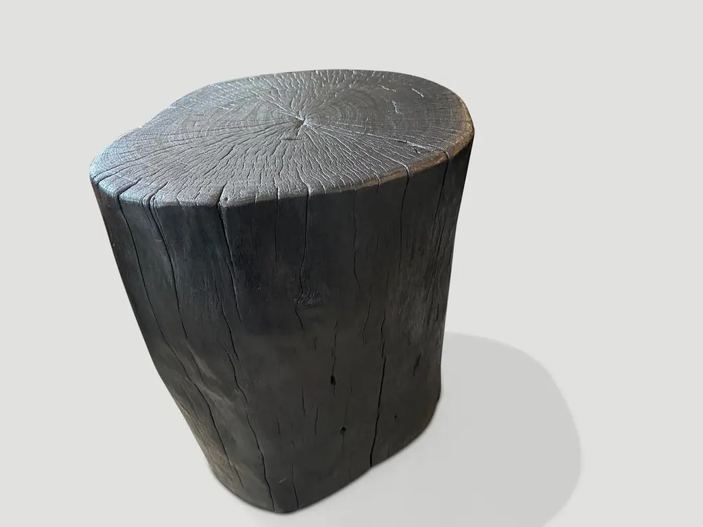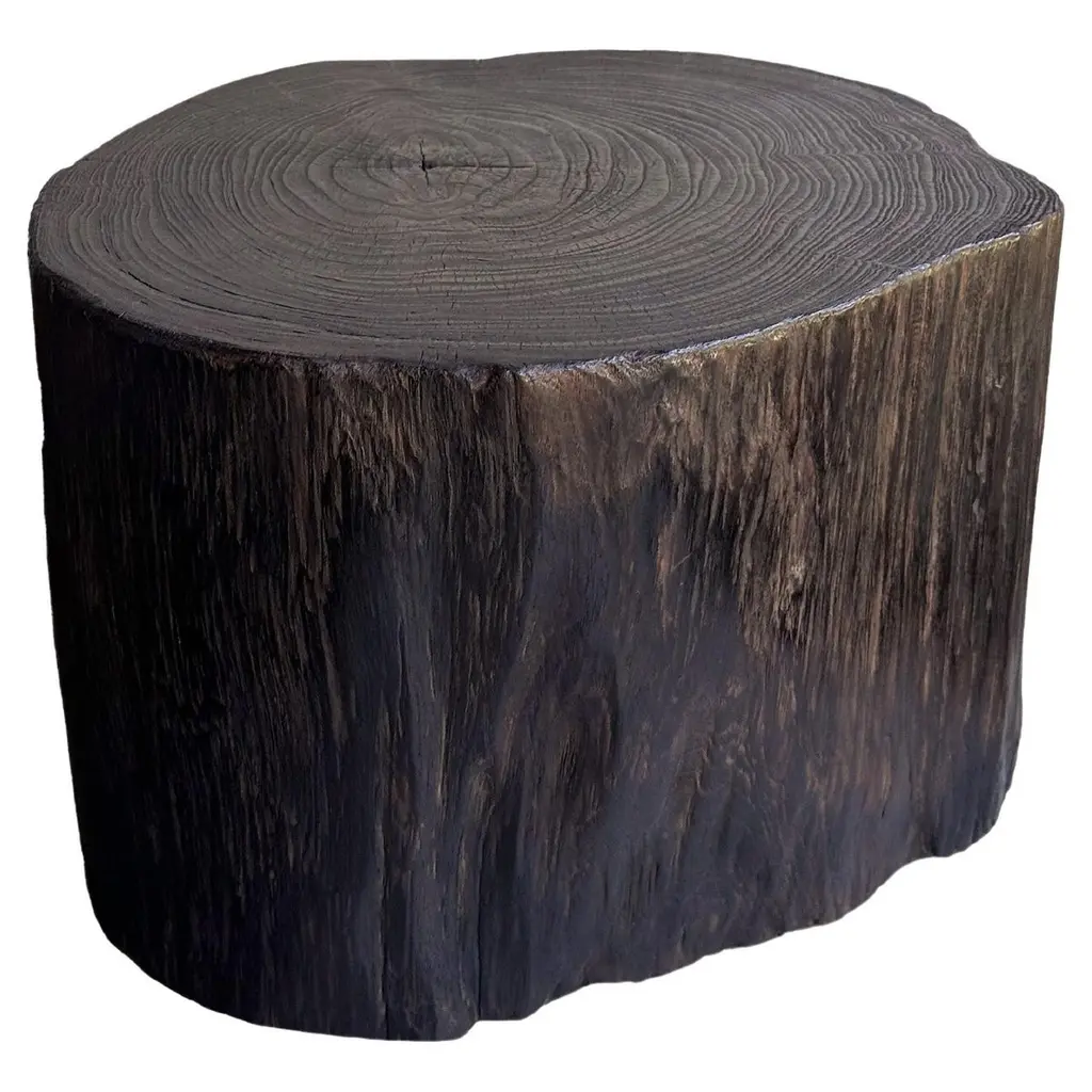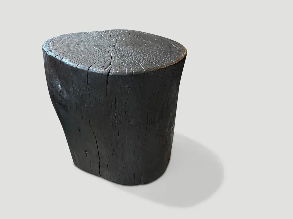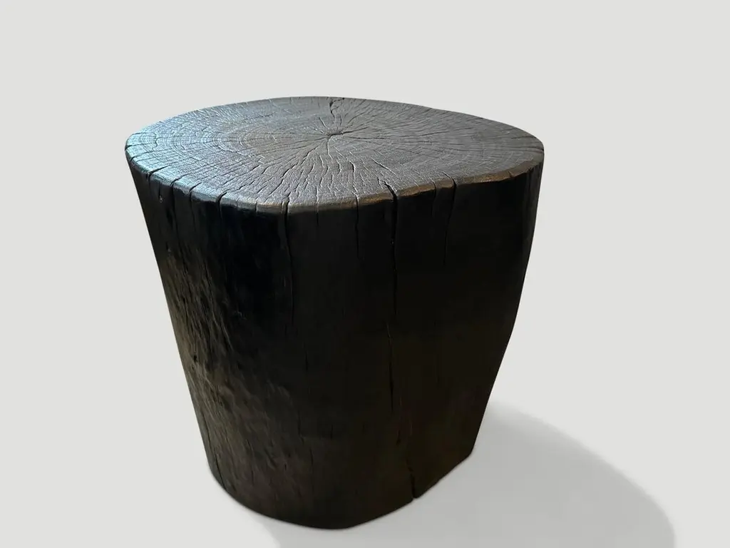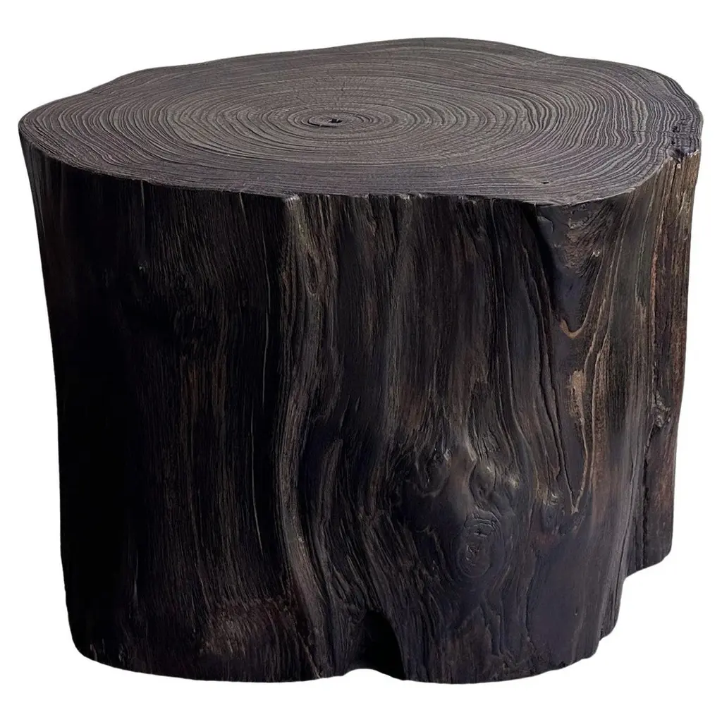 Reclaimed lychee wood side table. Charred, sanded and sealed whilst respecting the natural organic shape and revealing the beautiful wood grain. The Triple Burnt Collection represents a unique line of modern furniture made from solid reclaimed wood. Burnt three times to produce a rich, charcoal finish with impressive depth-a result unachievable using standard stains and finishes. A perfect combination of modern and organic.Own an Andrianna Shamaris original.Andrianna Shamaris. The Leader In Modern Organic Design.