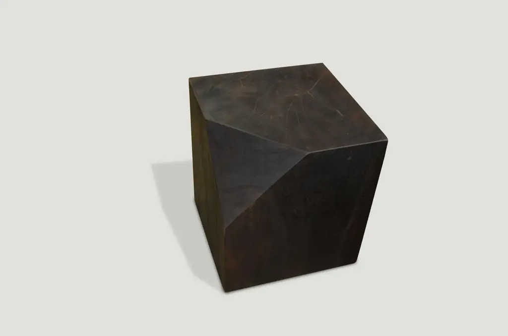 Single burnt suar wood side table, sanded and sealed with a smooth finish. We have a collection that work well together. The price reflects one.Andrianna Shamaris. The Leader In Modern Organic Design.