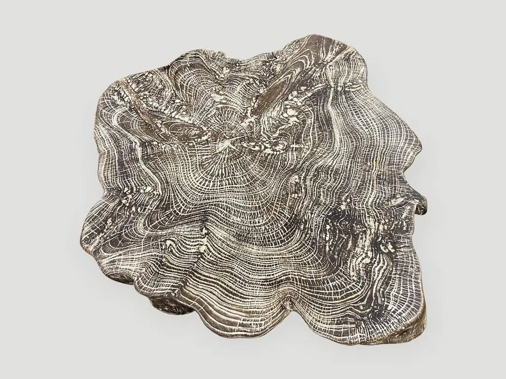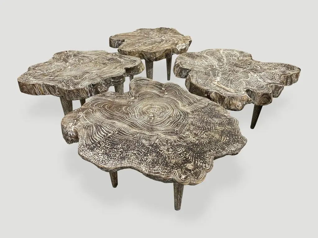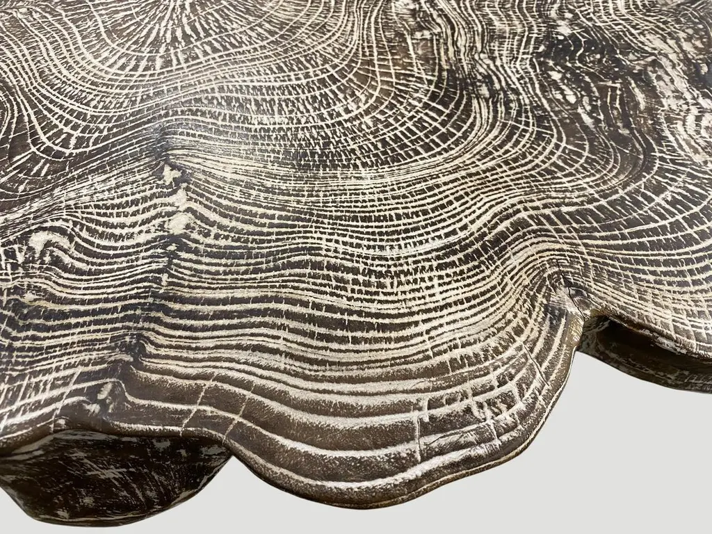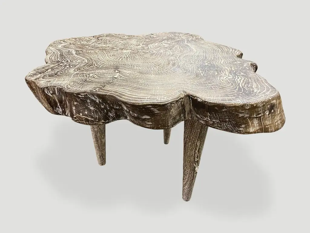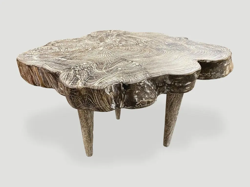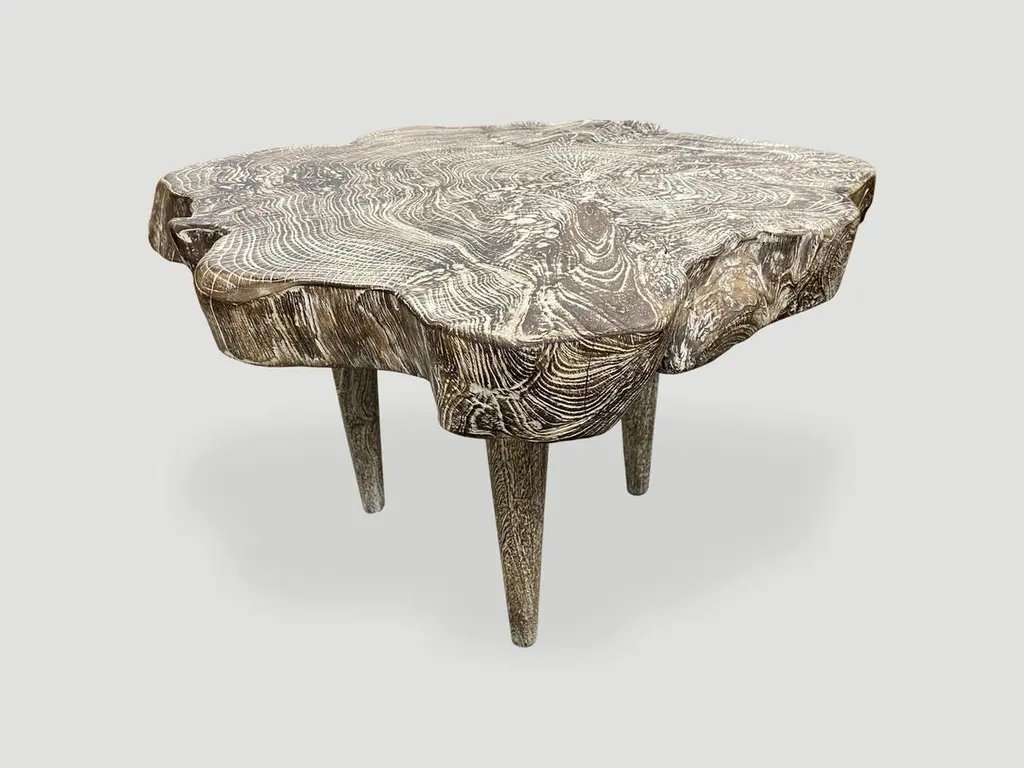 Andrianna Shamaris Live Edge Single Charred Cerused Teak Wood Side Table
