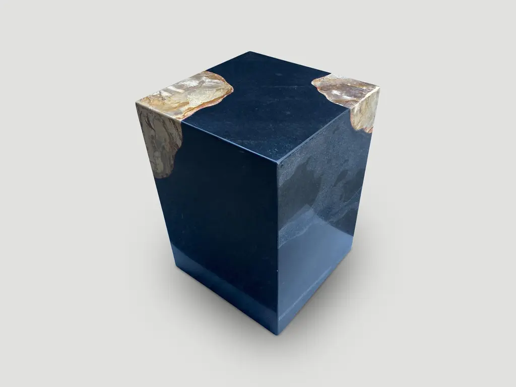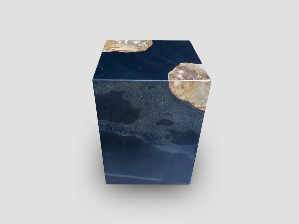 Volcanic stone panels are joined together with a contrasting tone of petrified wood added on two corners. Modern yet with so much history. Own an Andrianna Shamaris original.Andrianna Shamaris. The Leader In Modern Organic Design.