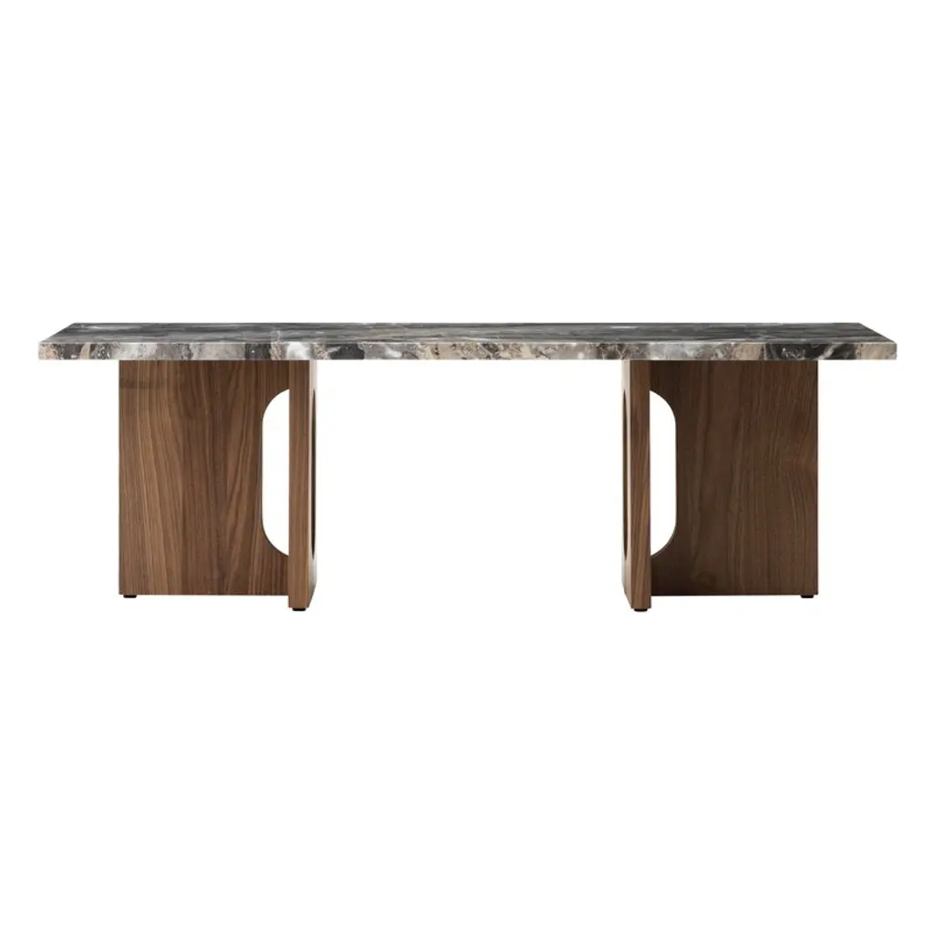 Audo Copenhagen's Androgyne lounge table is a charming combination of contrasting features. Crafted from walnut veneer and unique Gray Galaxy marble, the table plays with feminine and masculine elements, soft cuts and sharp edges, as well as simple and bold silhouettes. Designed by Danielle Siggerud, the harmonious, stable look of the Androgyne table is a focal point of the decor, equally pleasing to use and to gaze upon. The elegant lounge table is the perfect companion for a couch, but it can just as well be used as a gorgeous side table.