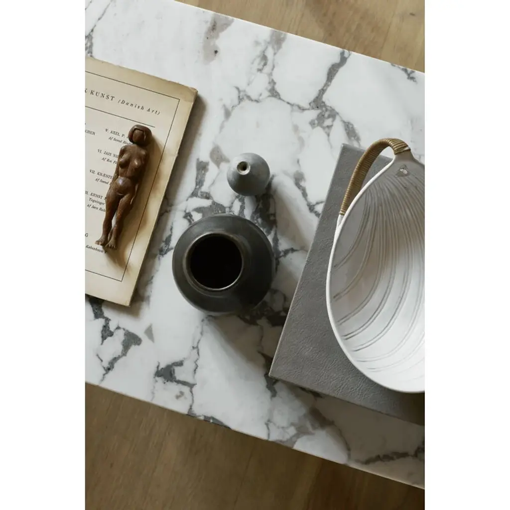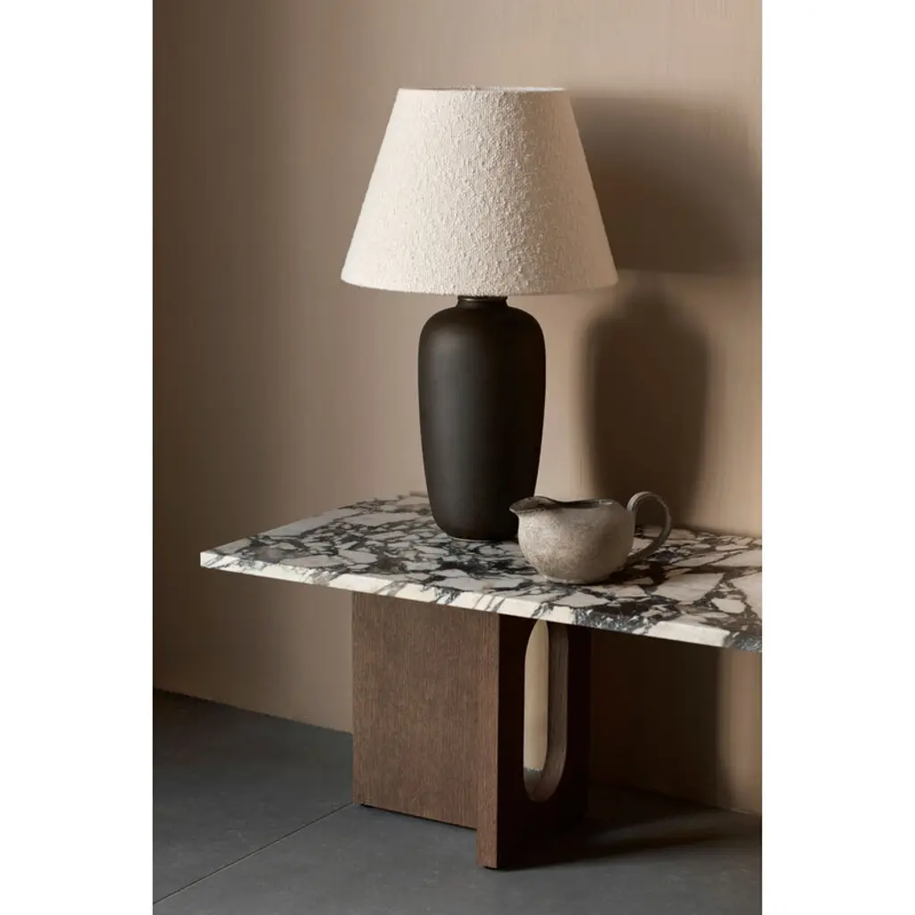 Audo Copenhagen's Androgyne lounge table is a charming combination of contrasting features. Crafted from dark stained oak veneer and unique Calacatta Viola marble, the table plays with feminine and masculine elements, soft cuts and sharp edges, as well as simple and bold silhouettes. Designed by Danielle Siggerud, the harmonious, stable look of the Androgyne table is a focal point of the decor, equally pleasing to use and to gaze upon. The elegant lounge table is the perfect companion for a couch, but it can just as well be used as a gorgeous side table.