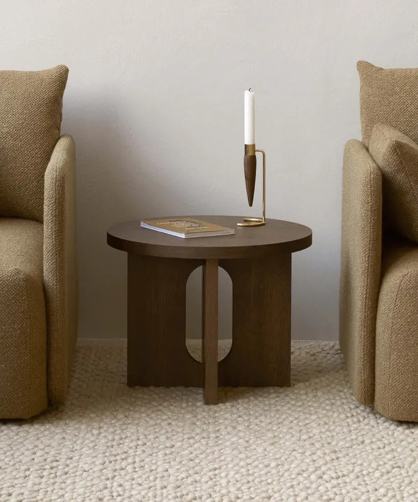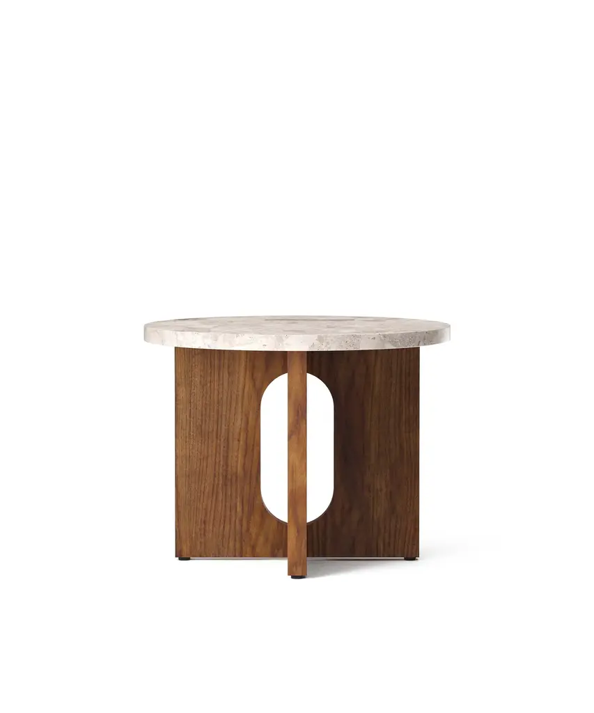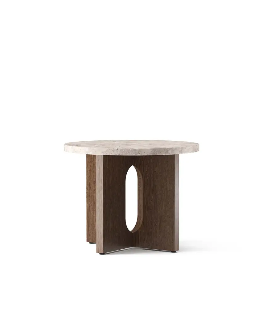 A beautiful and practical furniture design that makes clever use of craftsmanship and tactile materials, the simple silhouette of the Androgyne Side Table is characterised by opposites. The pure use of materials contrasts with a refined silhouette of solid and soft lines, living up to its name thanks to its combination of masculine and feminine characteristics. The pairing of rich oak – with a natural or dark stained finish – walnut and Kunis Breccia stone creates a distinctive designcustomisable to any and every interior style.Designed by Danielle Siggerud for Danish design company, Audo Copenhagen.