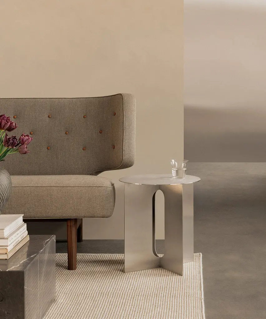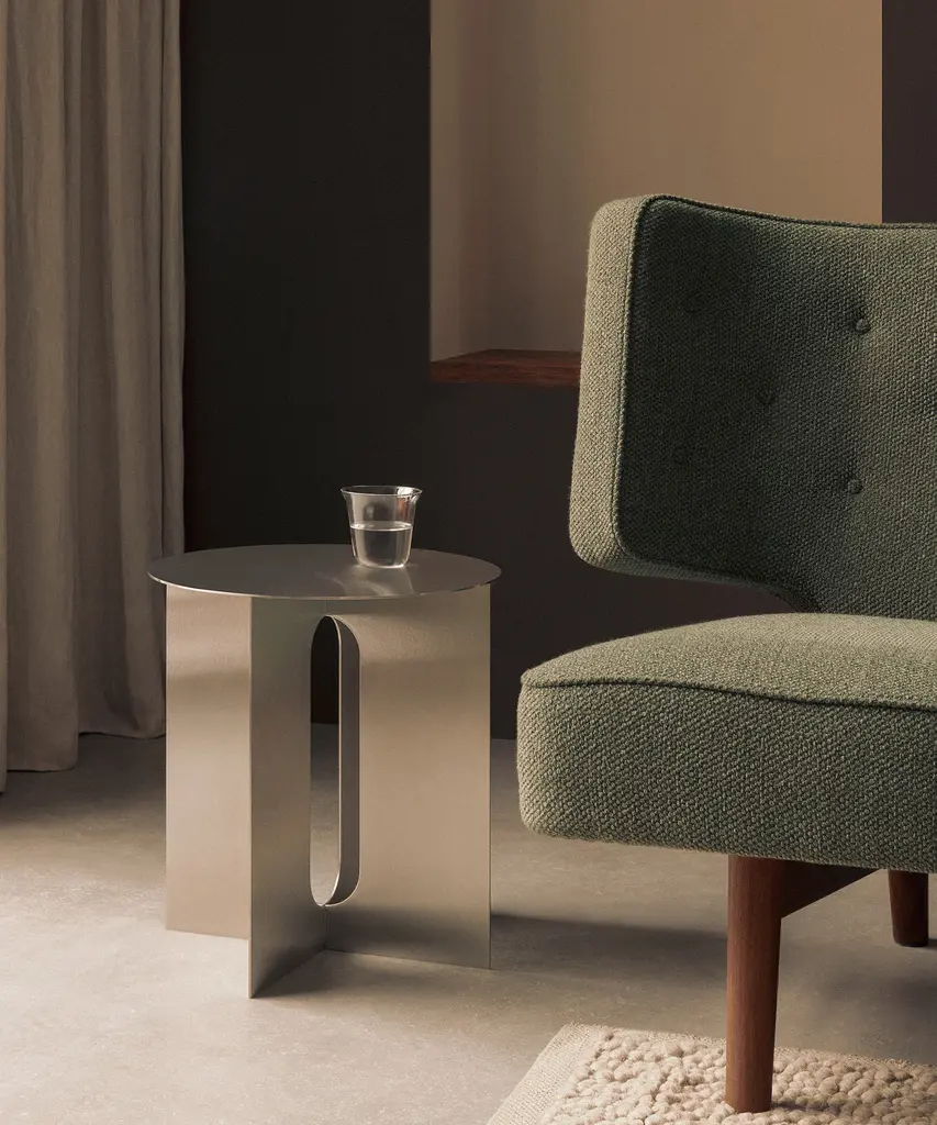 With its contemporary elegance and minimalist appeal, the Androgyne Side Table becomes more than just furniture—it becomes a statement piece that enhances the overall aesthetic of any space. Crafted from stainless steel, renowned for its durability and corrosion resistance, the brushed finish introduces an intriguing texture to the metal, creating an interplay of light and shadow that make the design a focal point in any room. The collection’s tabletop, offered in a range of materials, can be added to the design. Designed by Danielle Siggerud for Audo Copenhagen North America.