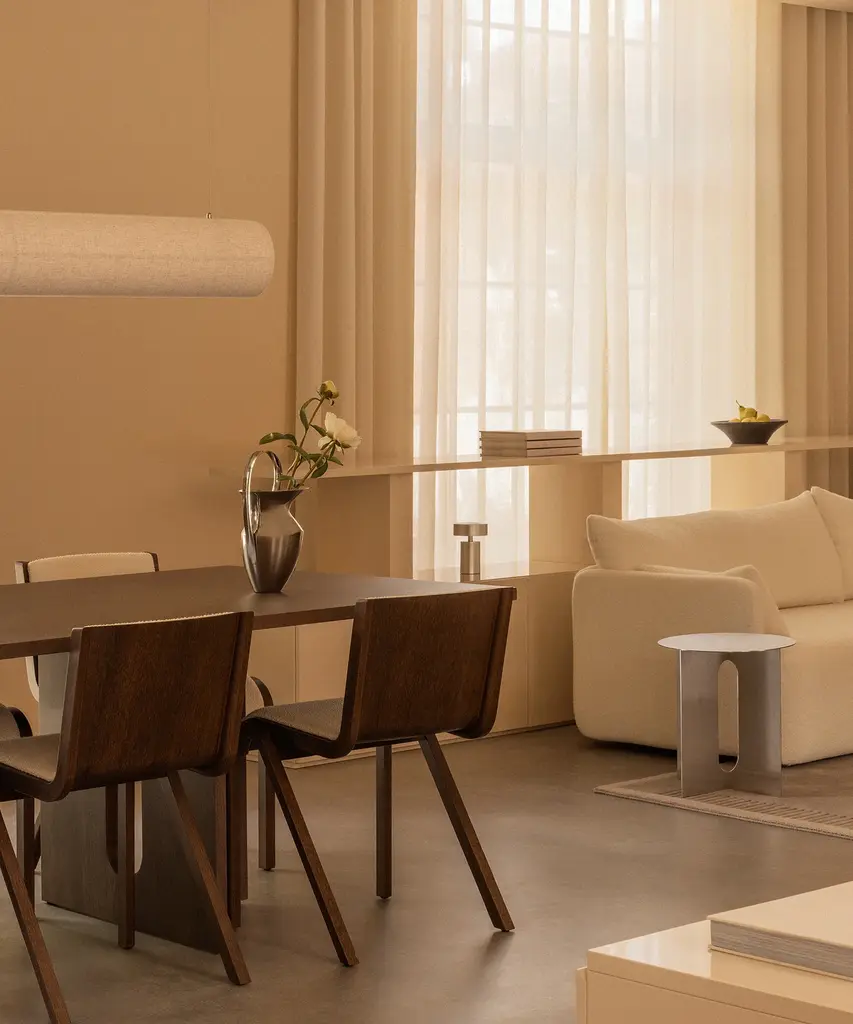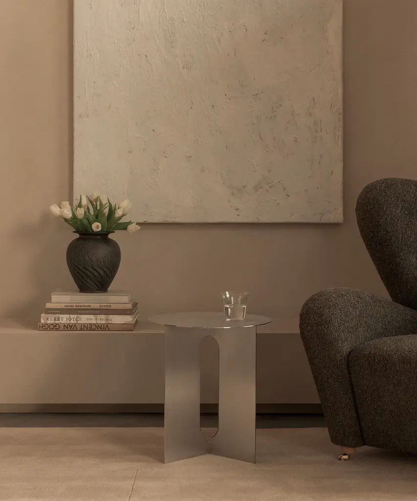 With its contemporary elegance and minimalist appeal, the Androgyne Side Table becomes more than just furniture—it becomes a statement piece that enhances the overall aesthetic of any space. Crafted from stainless steel, renowned for its durability and corrosion resistance, the brushed finish introduces an intriguing texture to the metal, creating an interplay of light and shadow that make the design a focal point in any room. The collection’s tabletop, offered in a range of materials, can be added to the design. Designed by Danielle Siggerud for Audo Copenhagen North America.