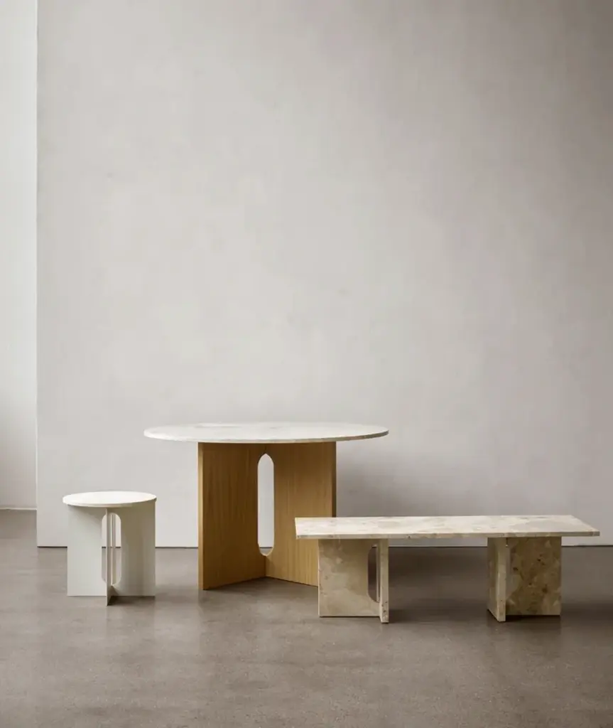 The table's sense of balance, proportion and mixed materials affords a sense of harmony. This blend of the masculine and feminine true androgyny is what lends the table its name. The essence of the table is its duality; it is elegant yet powerful.