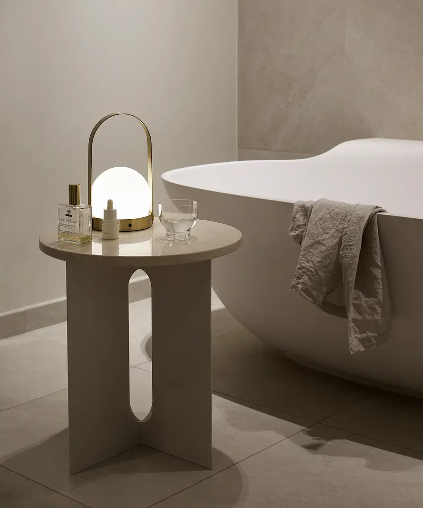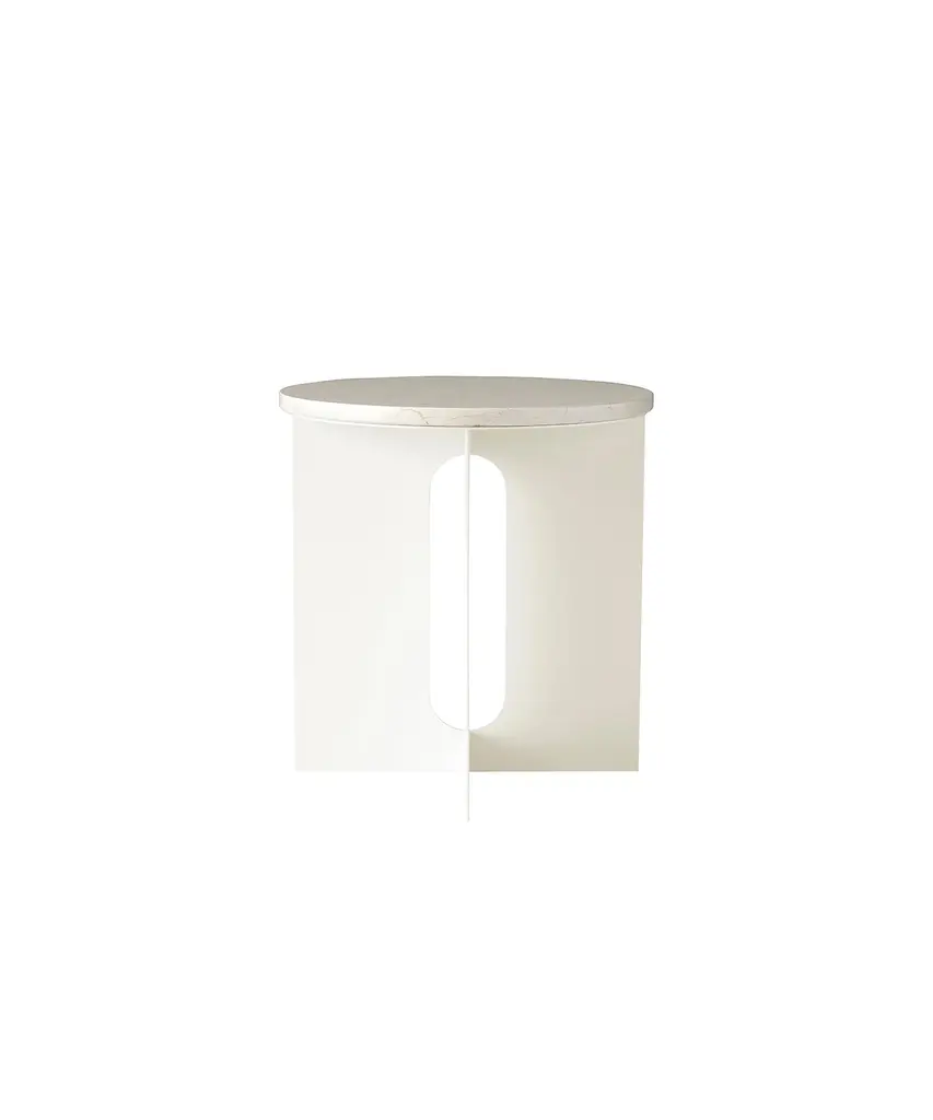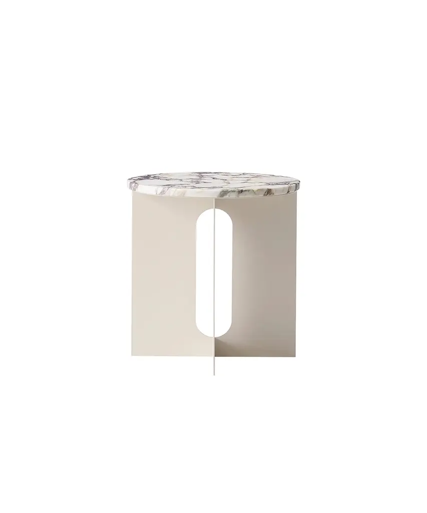 Elegant in silhouette, the Androgyne Side Table strikes the perfect sculptural balance. Designed by Copenhagen-based Norwegian architect and designer Danielle Siggerud, the Androgyne Side Table is distinguished by the refined marble tabletop paired with a laser cut steel base. Perfect for small spaces and versatile in both function and design, this piece is available in Black Marquina or Crystal Beige Rose Marble. Designed by Danielle Siggerud for Danish design company, Audo Copenhagen.