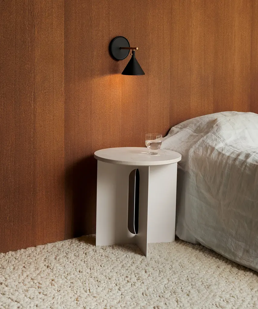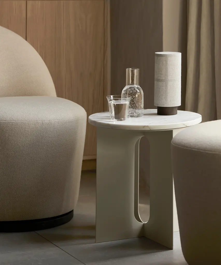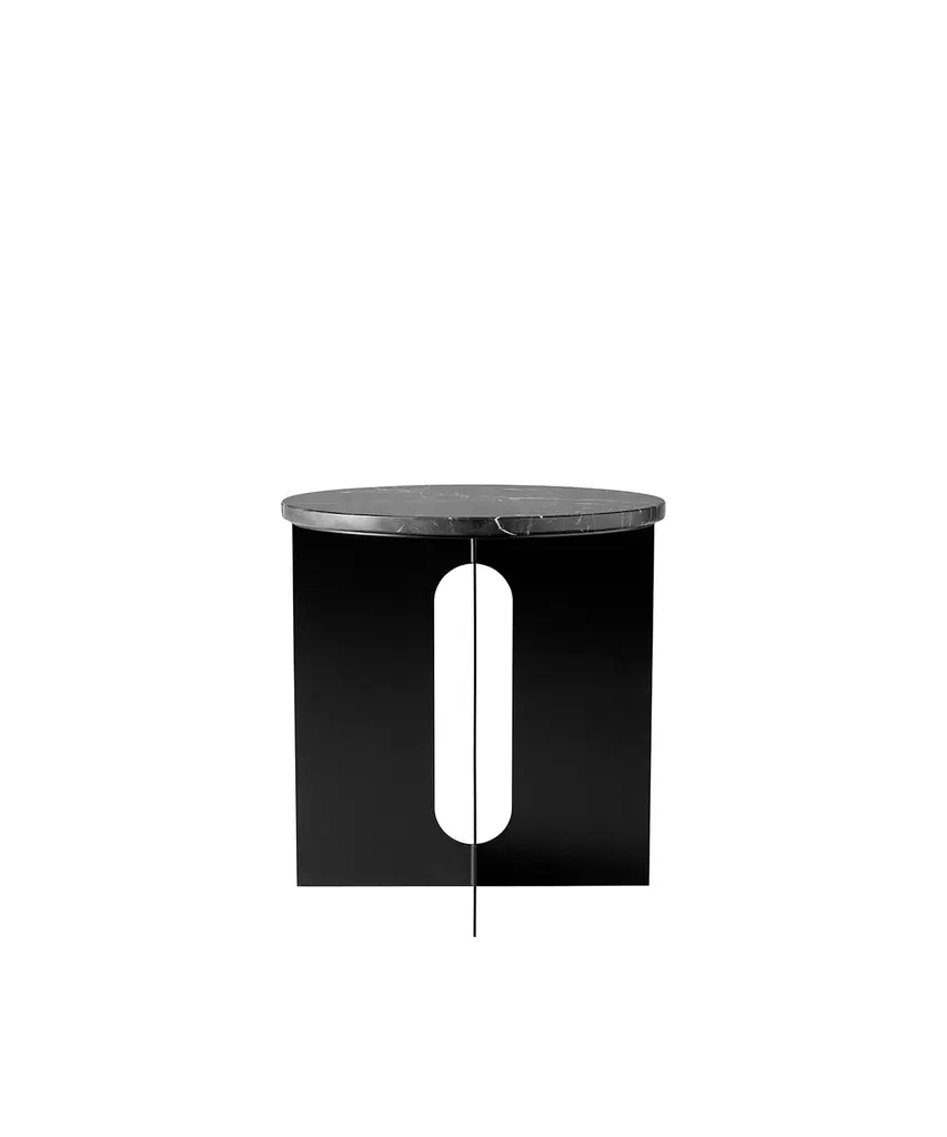 Elegant in silhouette, the Androgyne Side Table strikes the perfect sculptural balance. Designed by Copenhagen-based Norwegian architect and designer Danielle Siggerud, the Androgyne Side Table is distinguished by the refined marble tabletop paired with a laser cut steel base. Perfect for small spaces and versatile in both function and design, this piece is available in Black Marquina or Crystal Beige Rose Marble. Designed by Danielle Siggerud for Danish design company, Audo Copenhagen.