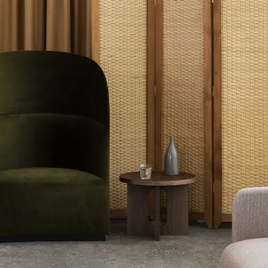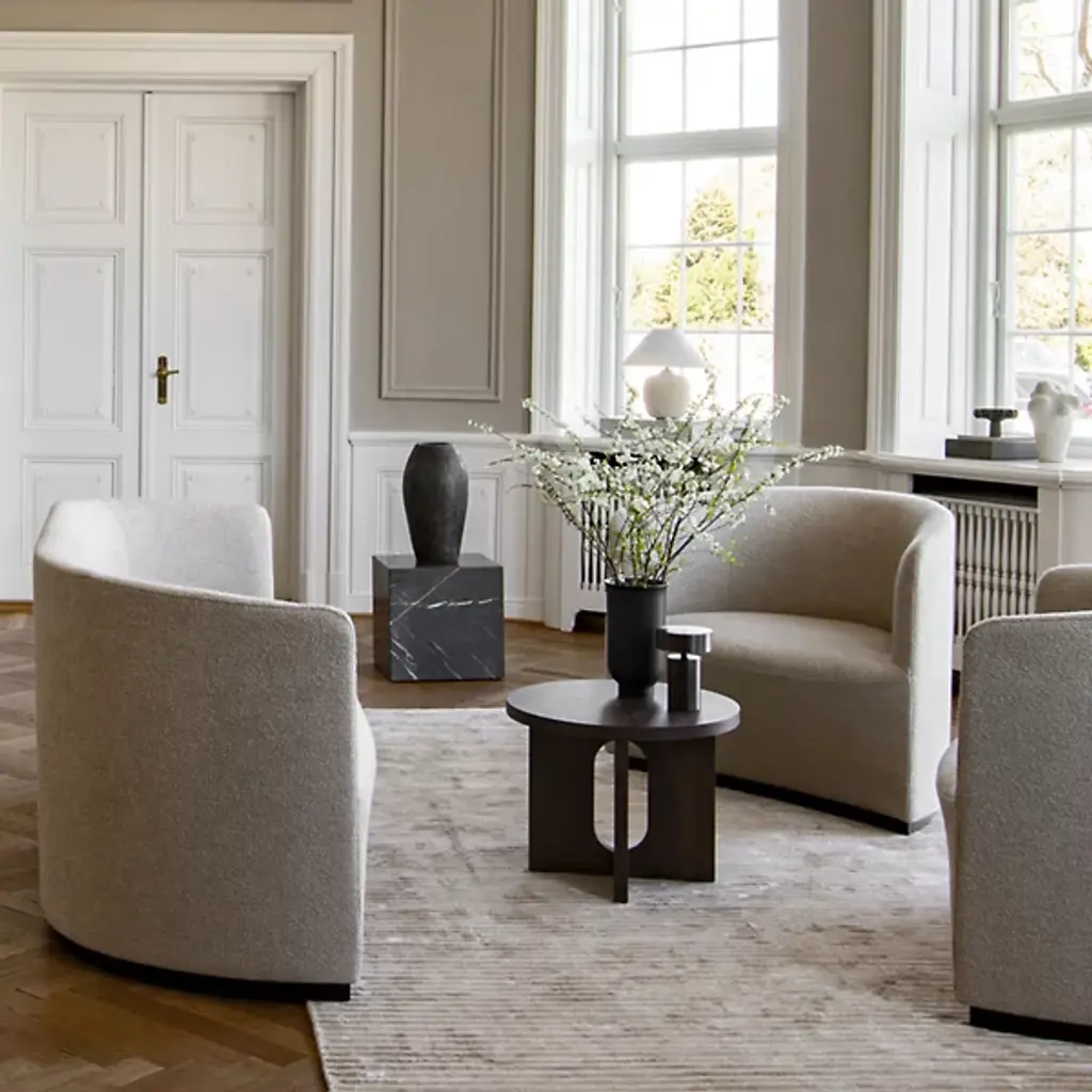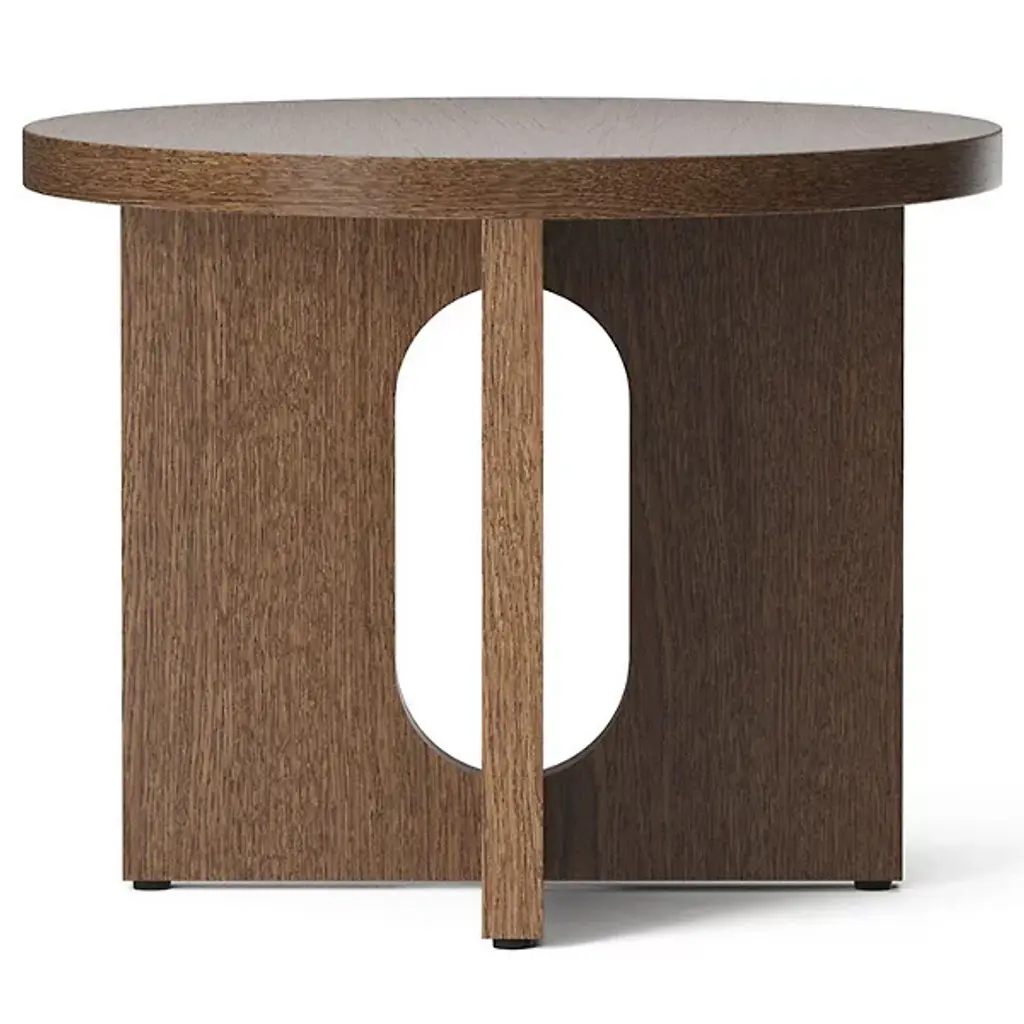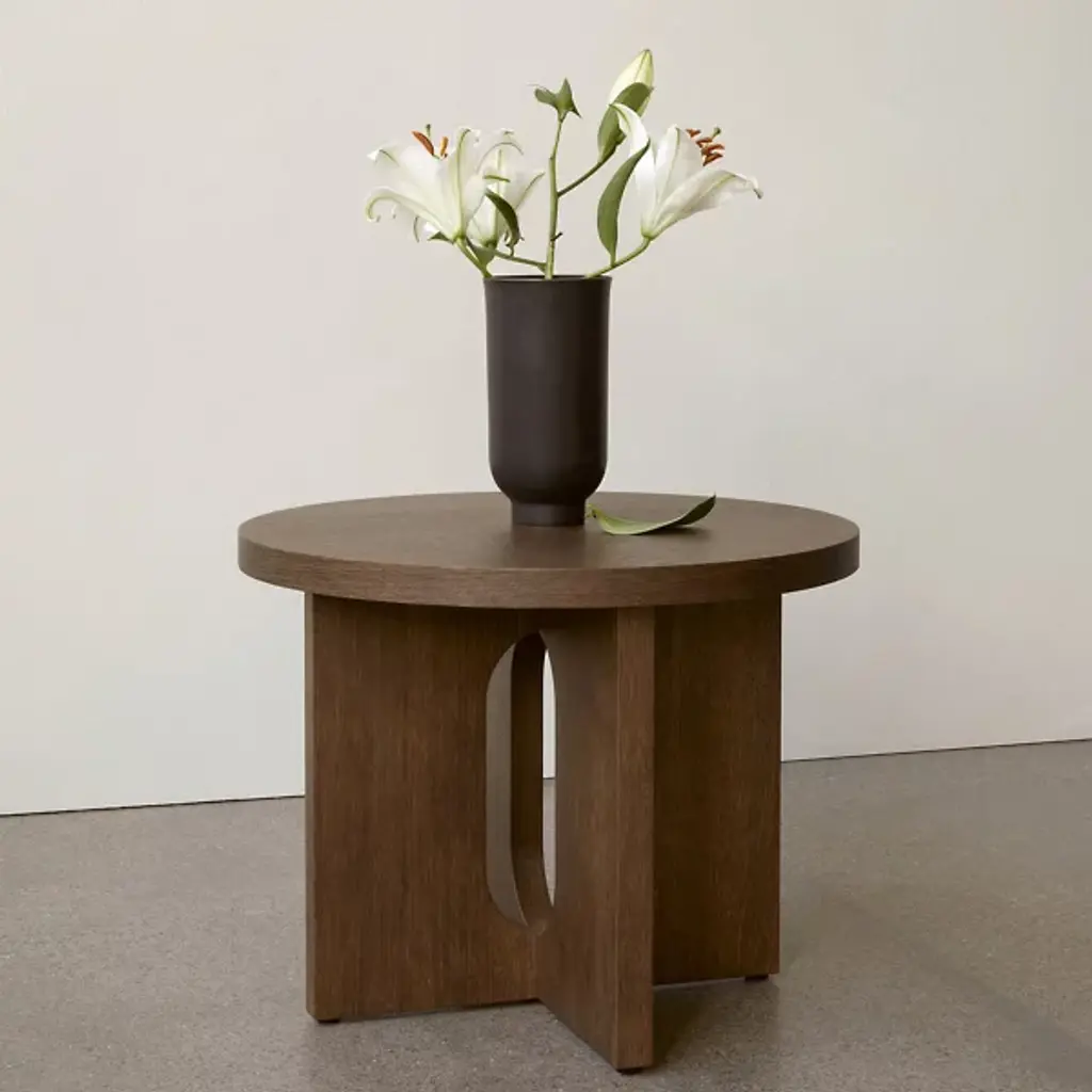 Spruce up your interiors with the refined modern lines of the Androgyne Side Table, Wood Base from Audo Copenhagen. Cleverly crafted from a mixture of materials, it pairs a wide cross base with a rounded flat top. This combination of clean curves and flat planes lends it a clever, sculptural character that works well with a wide array of indoor décor styles. The side table's Scandinavian stylistic sensibility is showcased by an open oval cutout at the center of the table’s base. It provides an inspired display of negative space while still providing ample space for accessories or small display items.