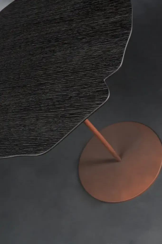 Small table Andy, mocha oak top, painted metal metal base Corten effect.