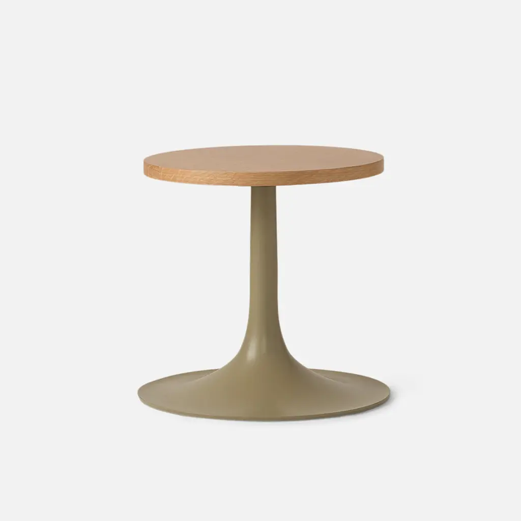 Refined and space-smart, the Andy Side Table updates a classic Thinline design with a flared cast aluminum base in earthy satin finishes. Topped with parchment-hued laminate and a warm plywood edge, or sleek white oak veneer, it’s the perfect companion for cozy seating nooks.