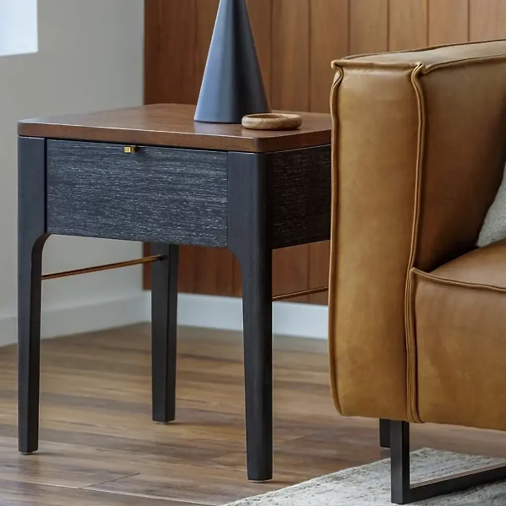 The Anello Side Table from Surya is a striking nod to mid-century modern design, blending sleek elegance with industrial flair. Its wood veneer and manufactured wood top provide a durable, stylish surface for décor or daily essentials, while the sturdy rubber wood and steel base ensure lasting stability. Crafted in Vietnam, it exudes exotic charm and sophistication. Easy to maintain, a quick wipe with a dry cloth keeps it pristine—no harsh cleaners needed.