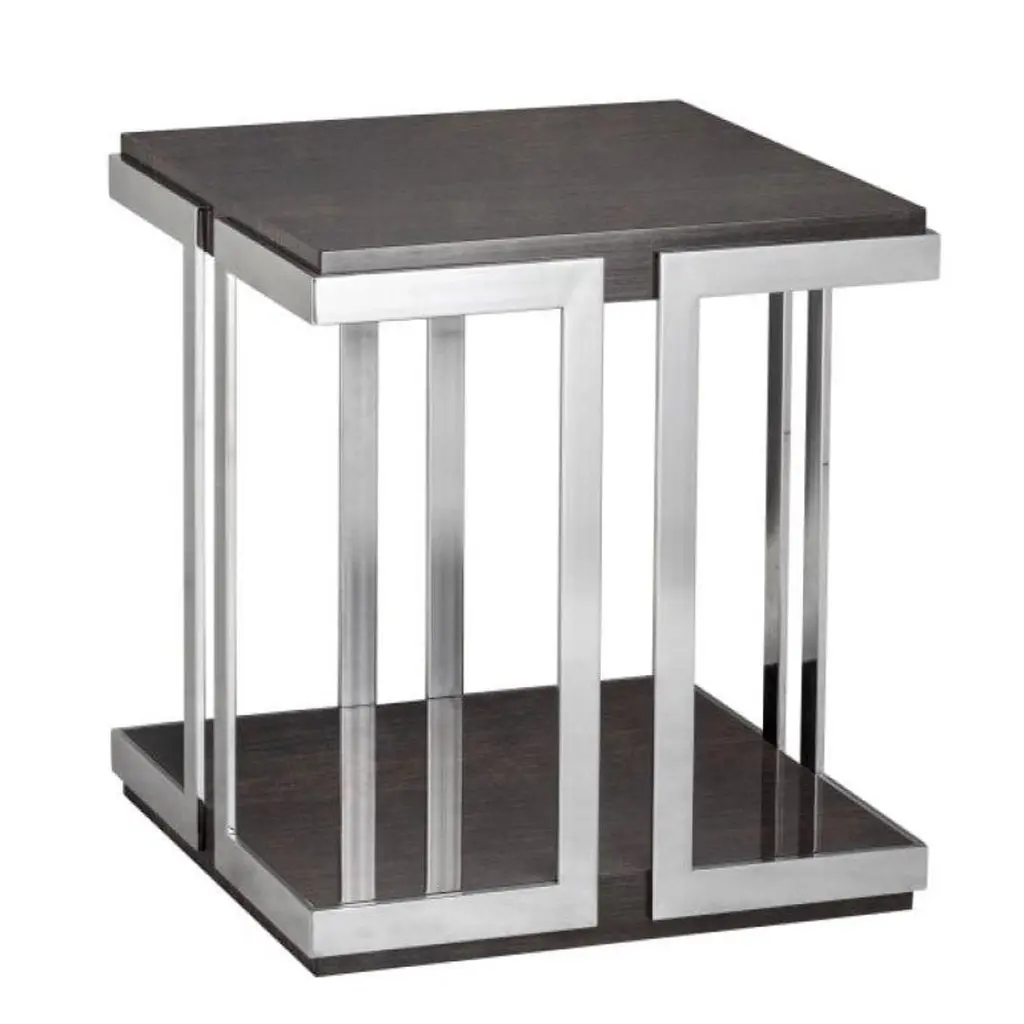 Angel Side Table In Oak And Polished Stainless Steel Structure