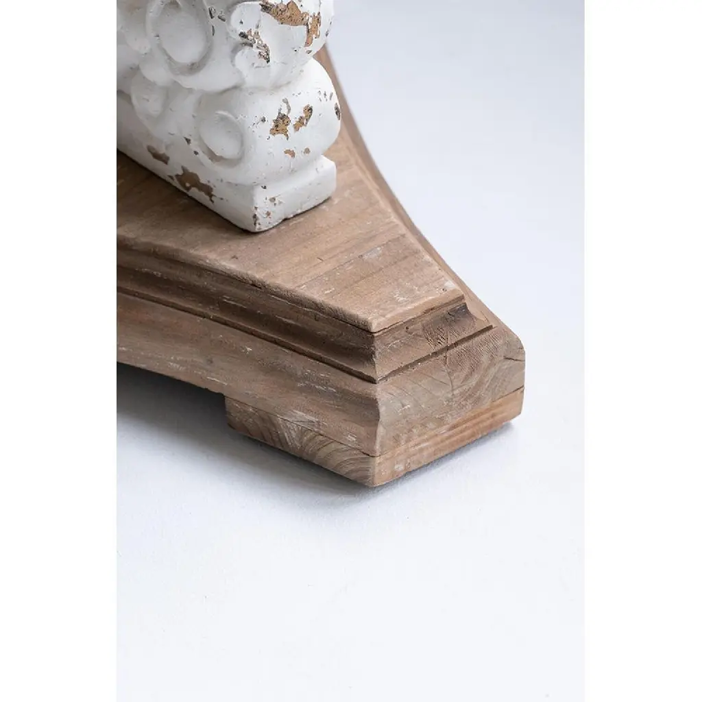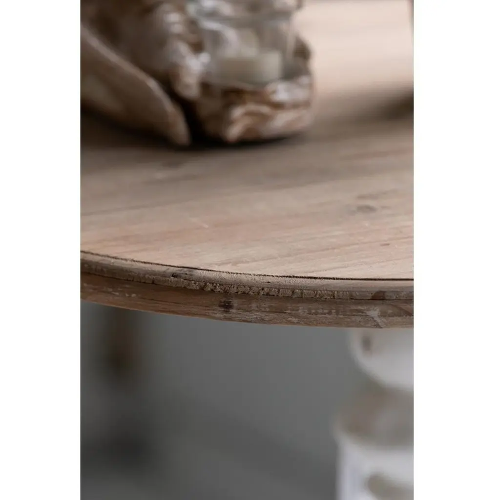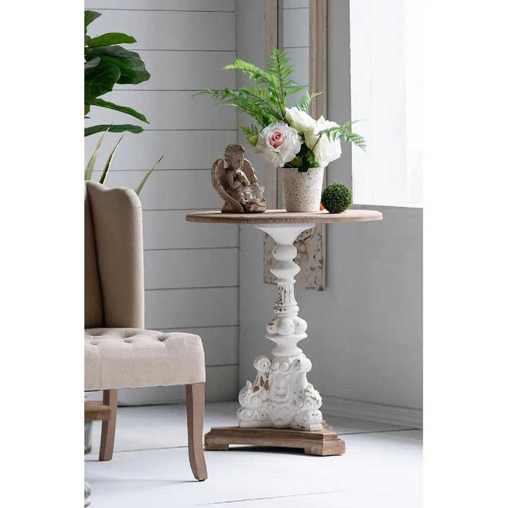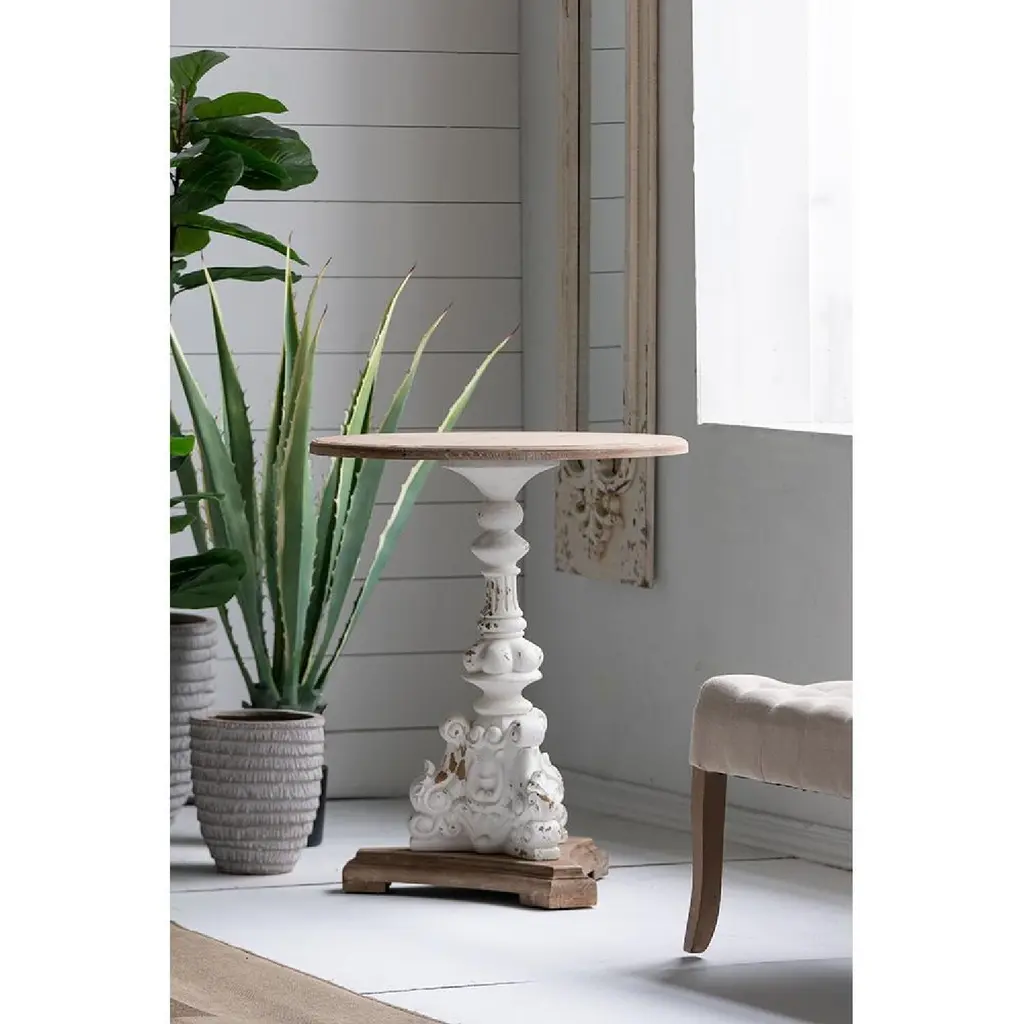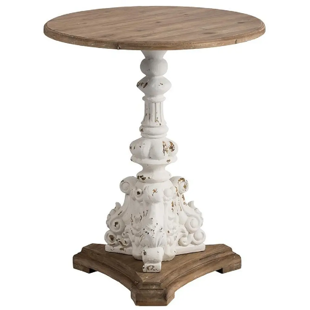 Antique White Round Side Table - D26x31" - Natural Wood/White