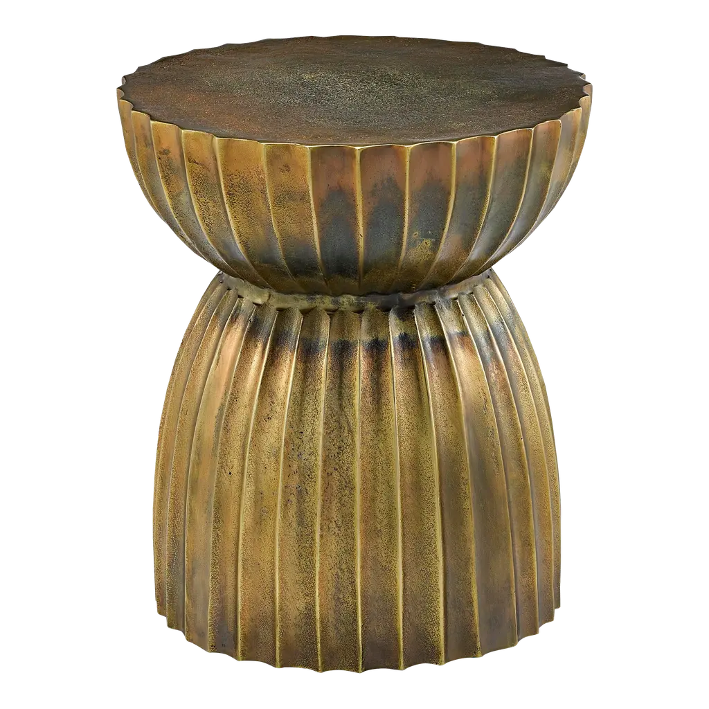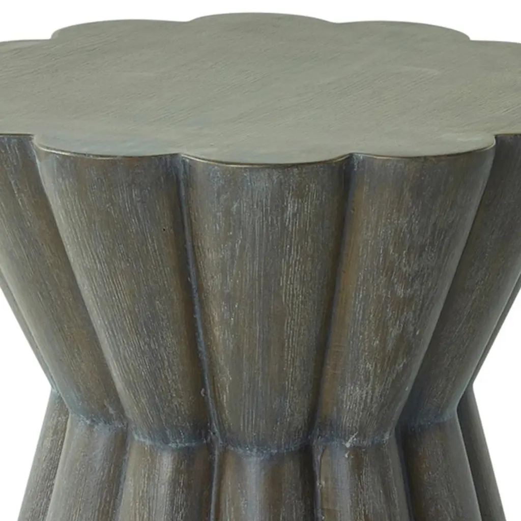 Crafted from resin in an appealing hourglass shape, the Annie side table elevates any living space. Its cerused forest black finish echoes the textural look of natural wood grain. Scalloped edges bring a playful touch to the modern silhouette.