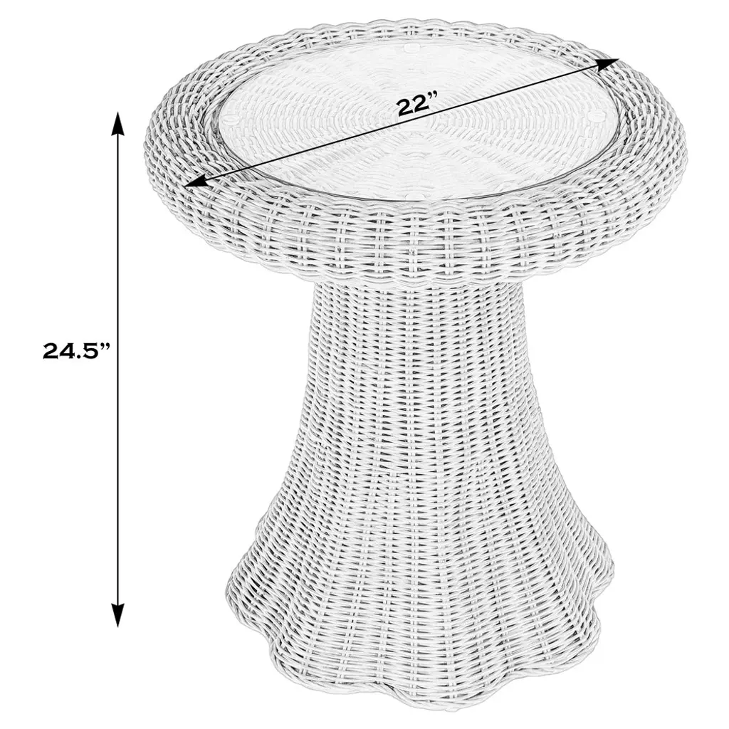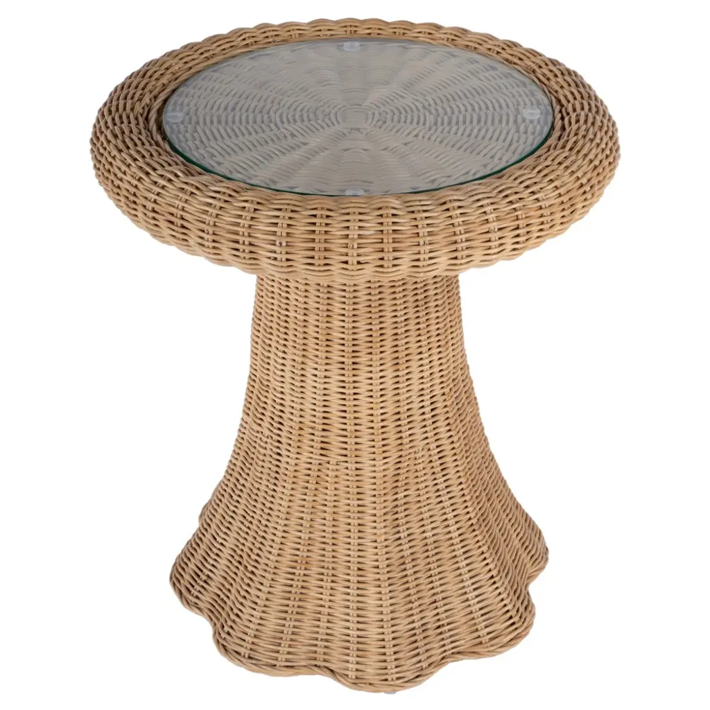 Ansel Coastal Beach Natural Rattan Scalloped Side End Table