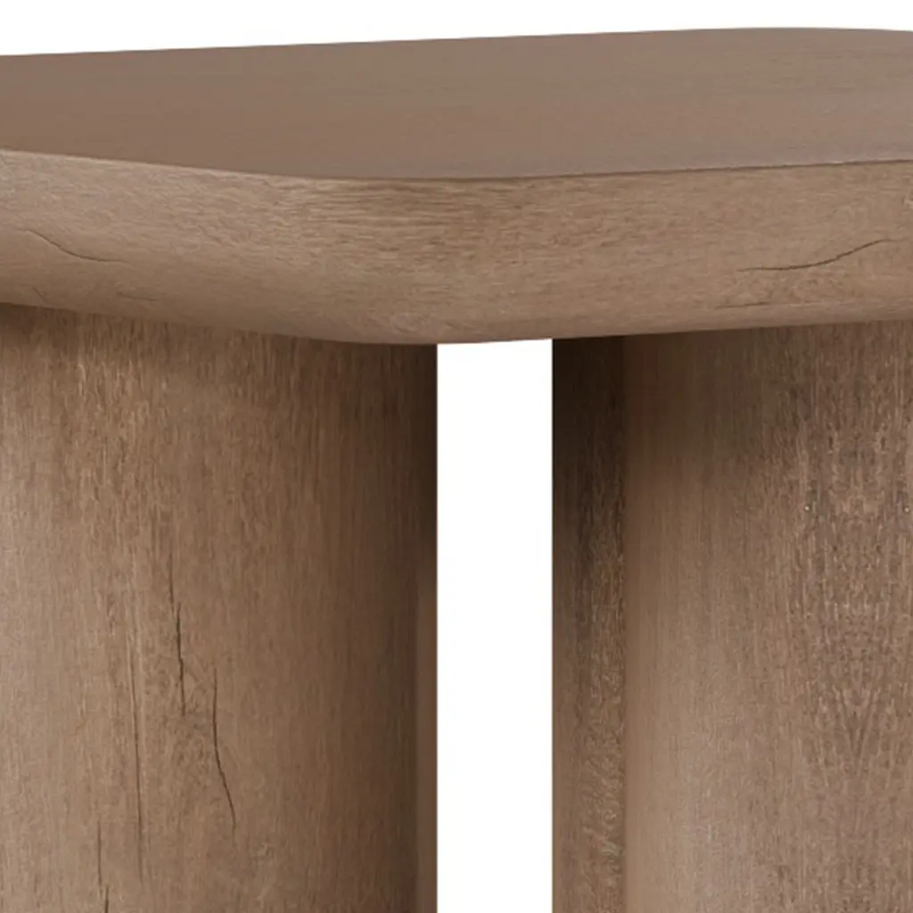 The Antibes end table features a pedestal base, a sleek tabletop, and beautiful wood, blending minimalist design with elevated details. The rich woodgrain enhances the natural finish, while three clustered columns complement the slim, round top. This versatile piece pairs well with sculptural and tactile accents, adding depth and texture to any space.