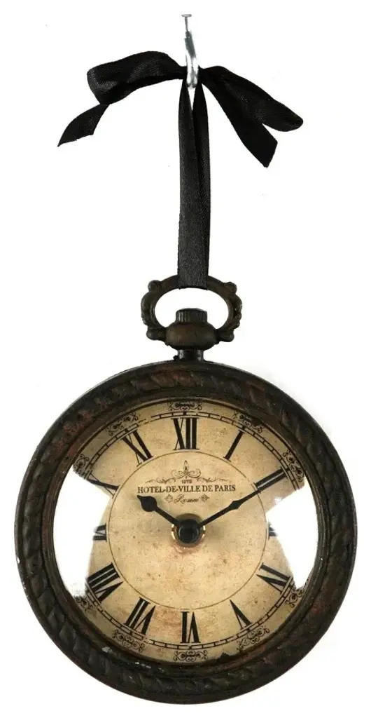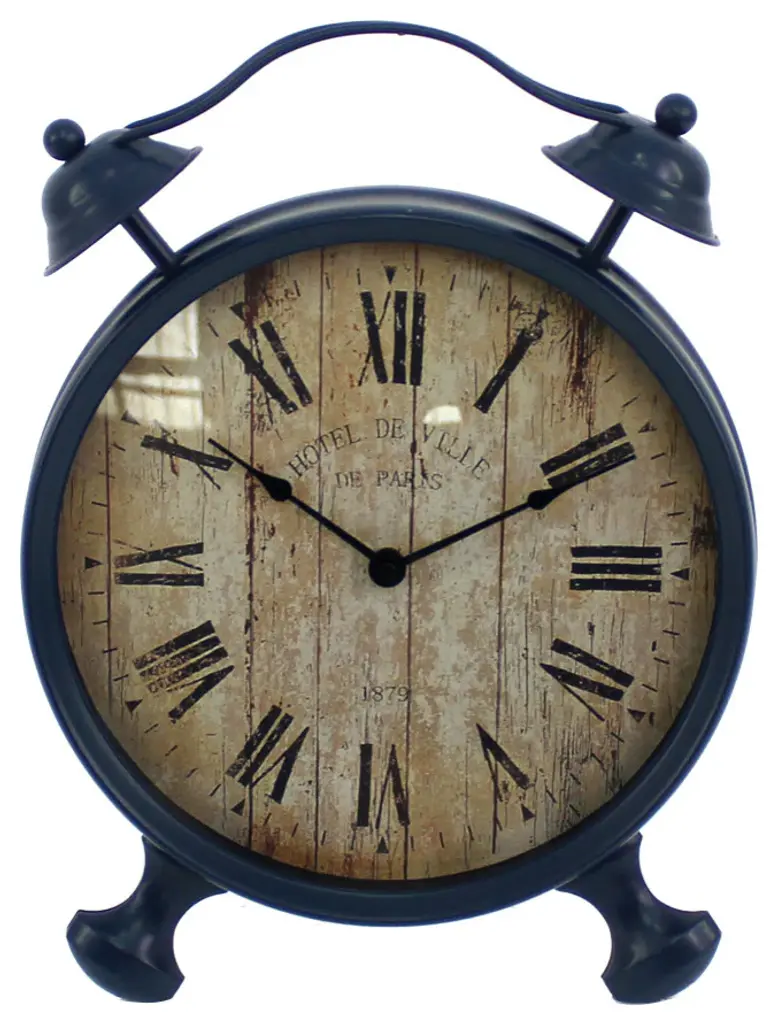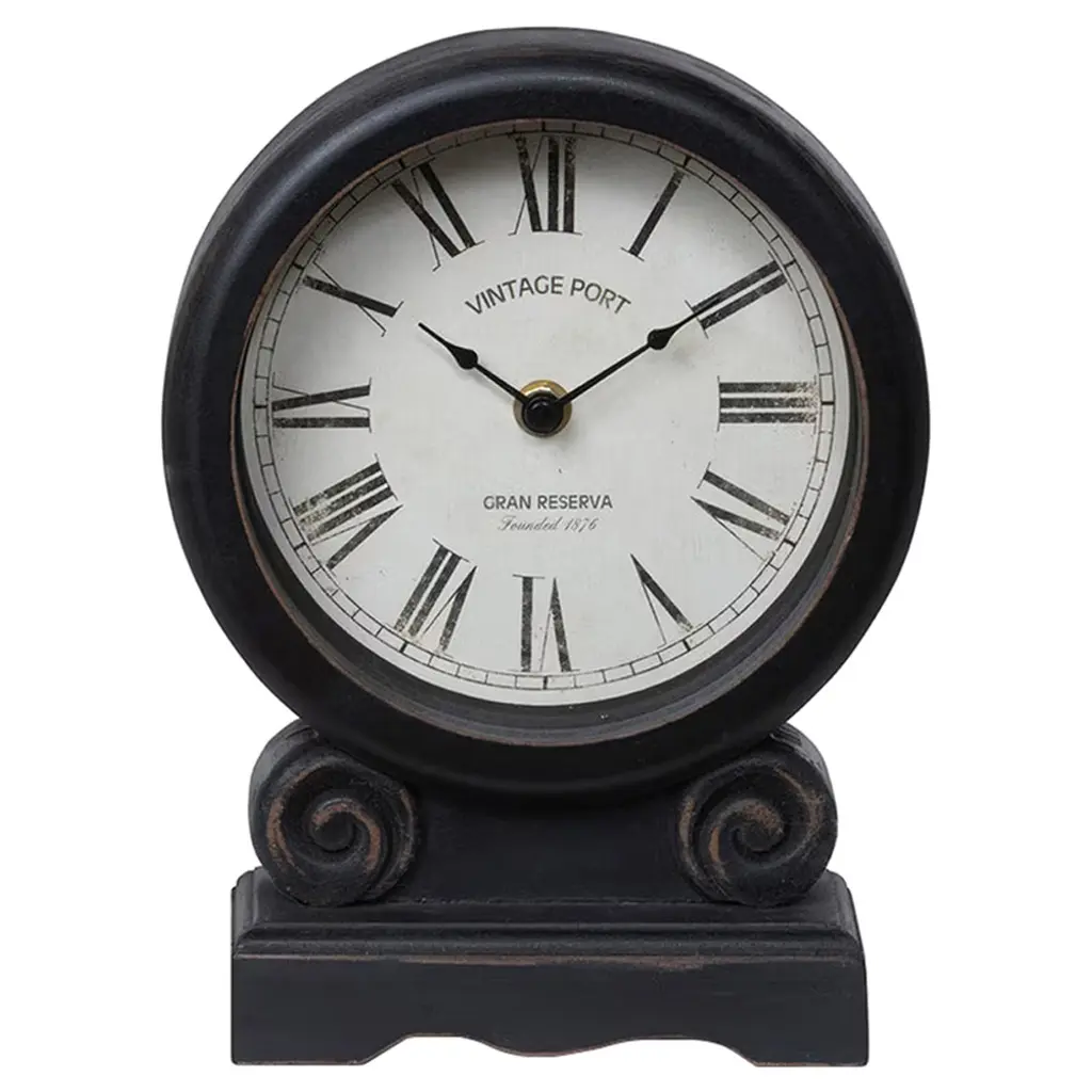 Antique Green Table Clock. With its curved base and distressed green finish, the Antique Green Table Clock brings Parisian charm and vintage flair to any space. The oversized black Roman numerals, aged white face, and decorative top loop evoke the feel of an old-world pocket watch. Bold yet elegant, it’s a timeless accent for mantels, shelves, or side tables. Fully assembled. Manufacturer: VIP International.