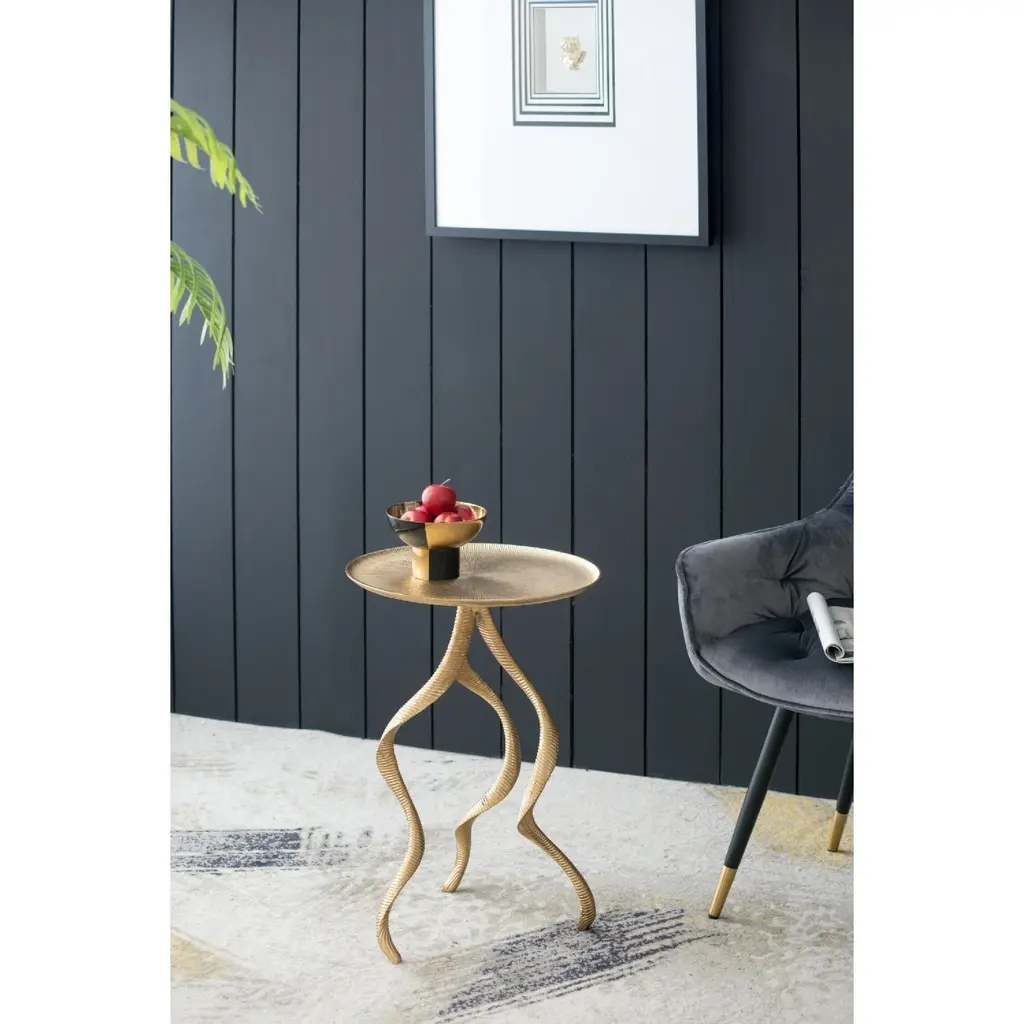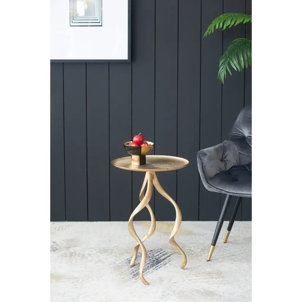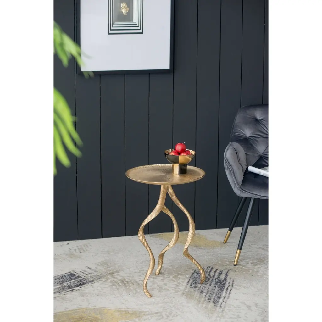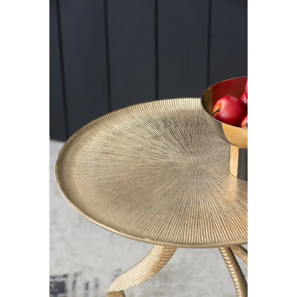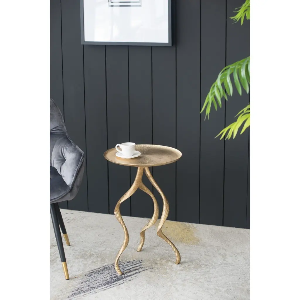Versatile and subtly stylish, the Antler Side Table is well-suited for use within a modern aesthetic. Designed with a ribbed metal top and gold finish, this side table has the potential for a number of uses. Use this modern side table to house a cute lamp or as the place for your most cherished photos.