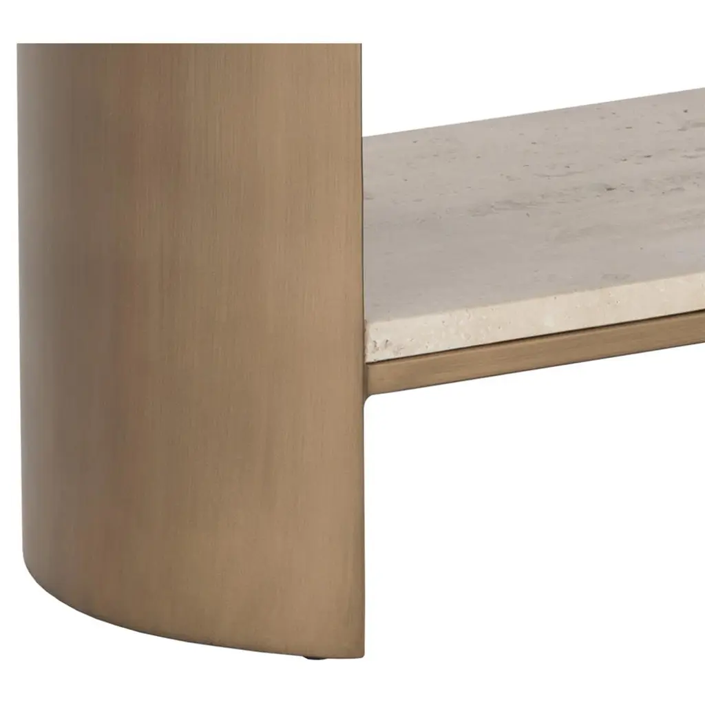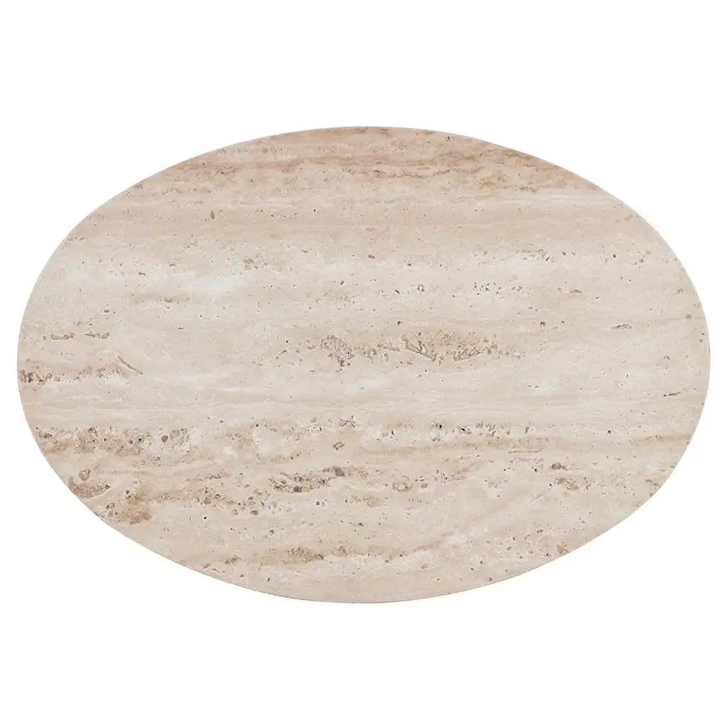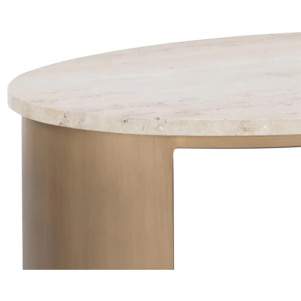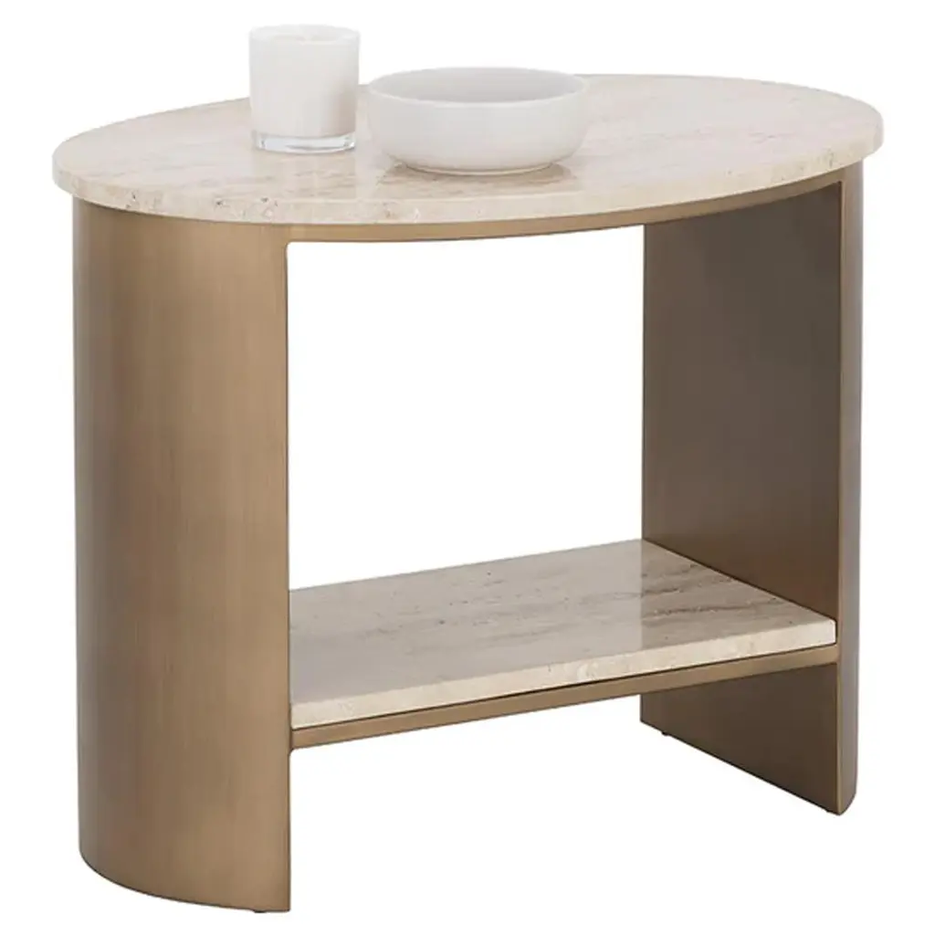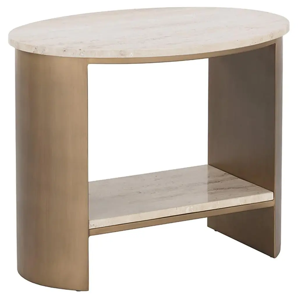 Aoife Modern Natural Travertine Antique Gold Iron Oval End Table