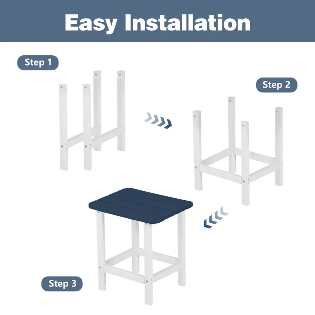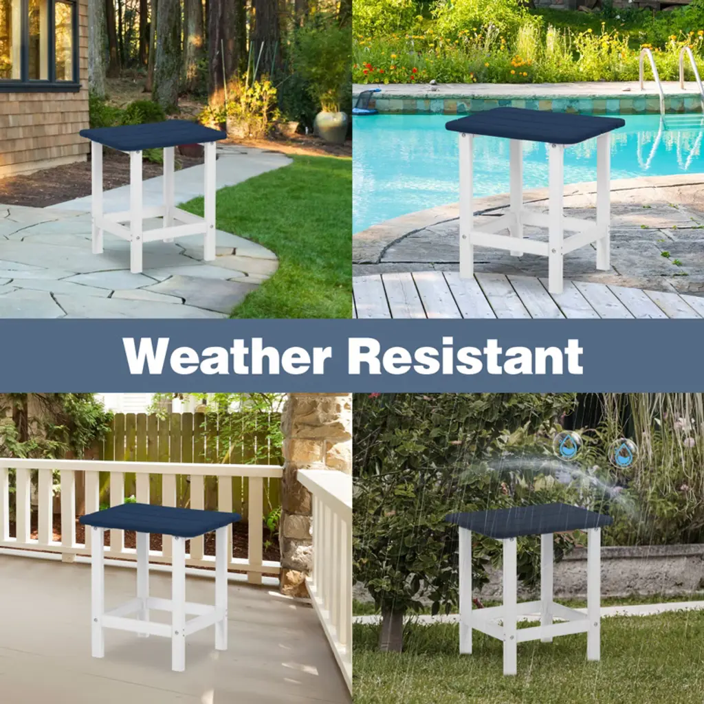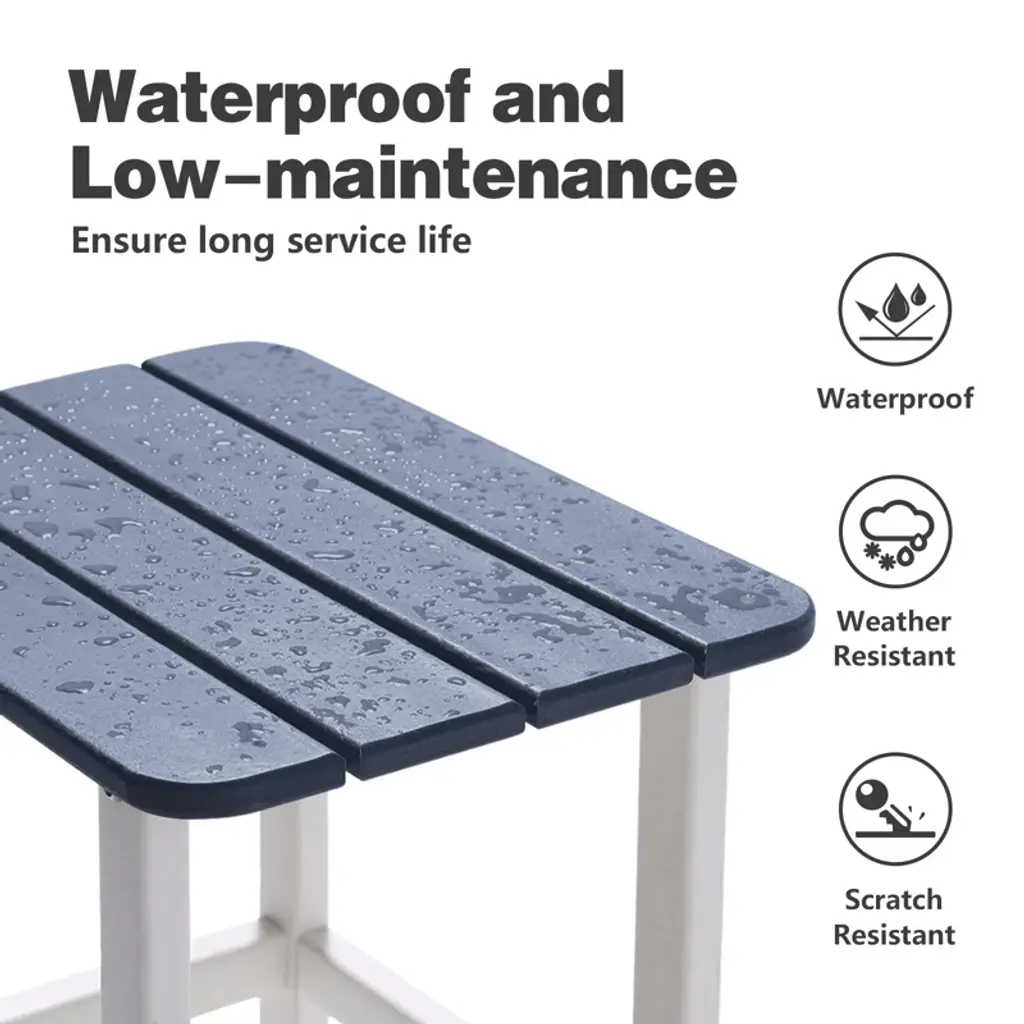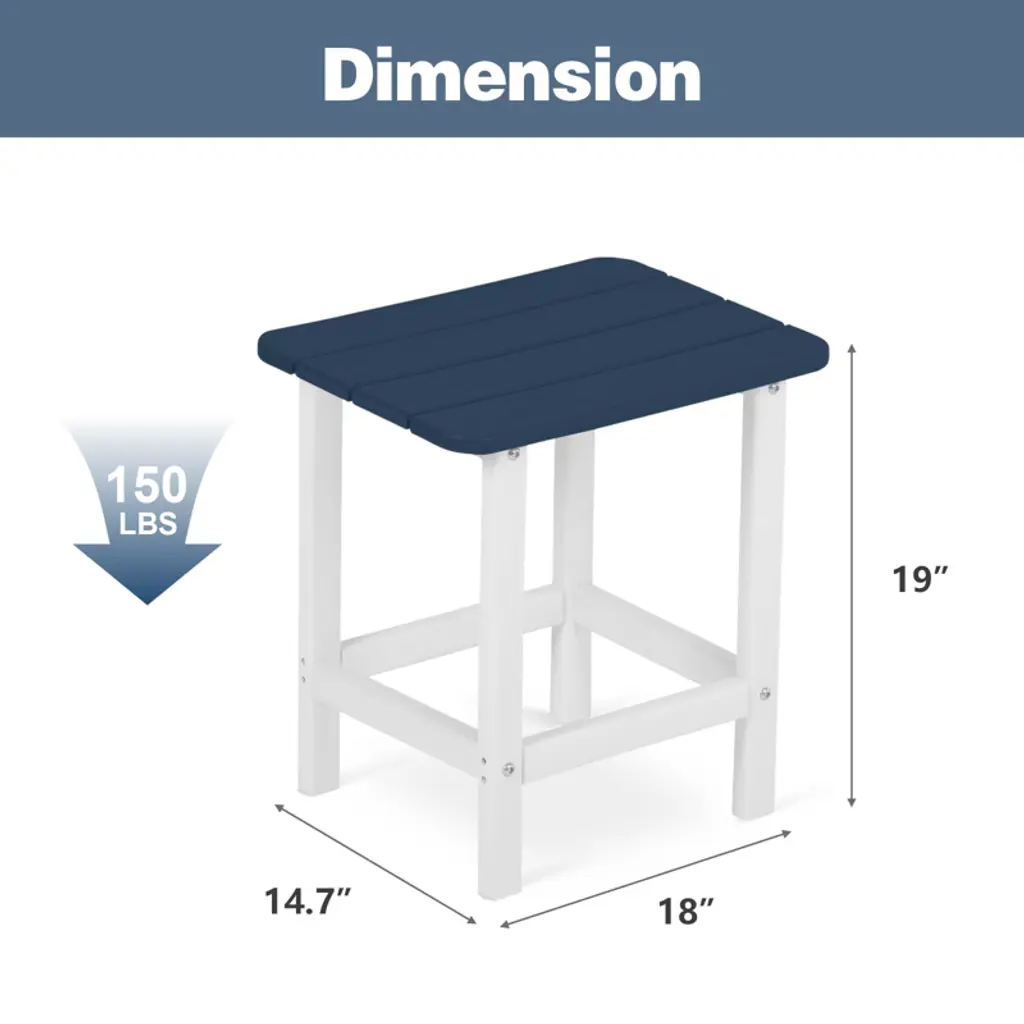 Aoodor Outdoor Side Table, Square Adirondack Patio End Table for Patio, Pool, Porch. Measuring 18 x 14.6 x 19 inches (L x W x H), this side table is a stylish and durable addition to your patio, pool, or porch. Crafted from HDPE, it offers the strength of wood without the worry of maintenance.