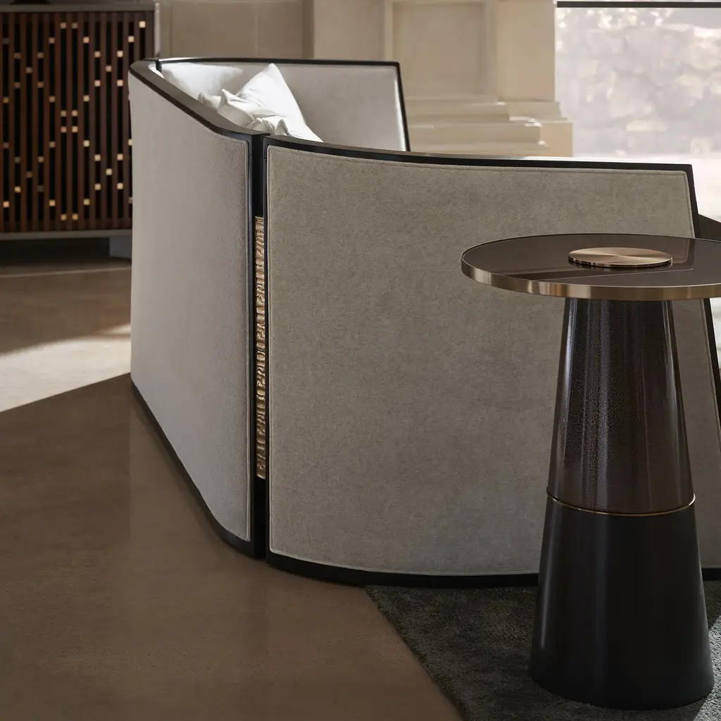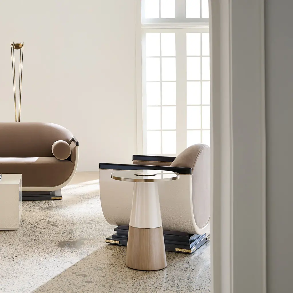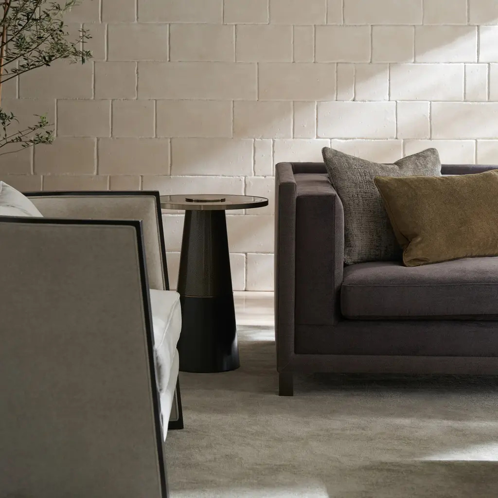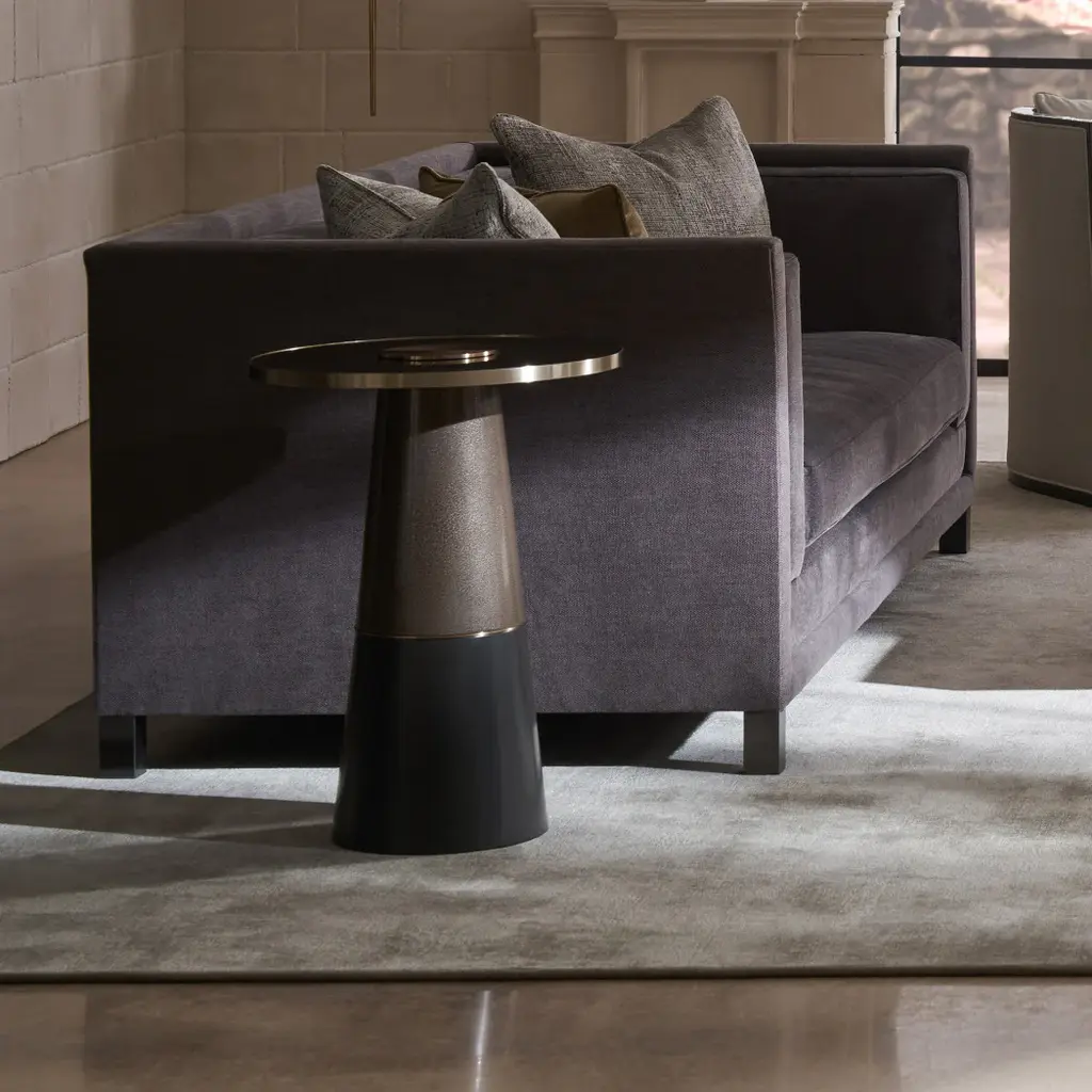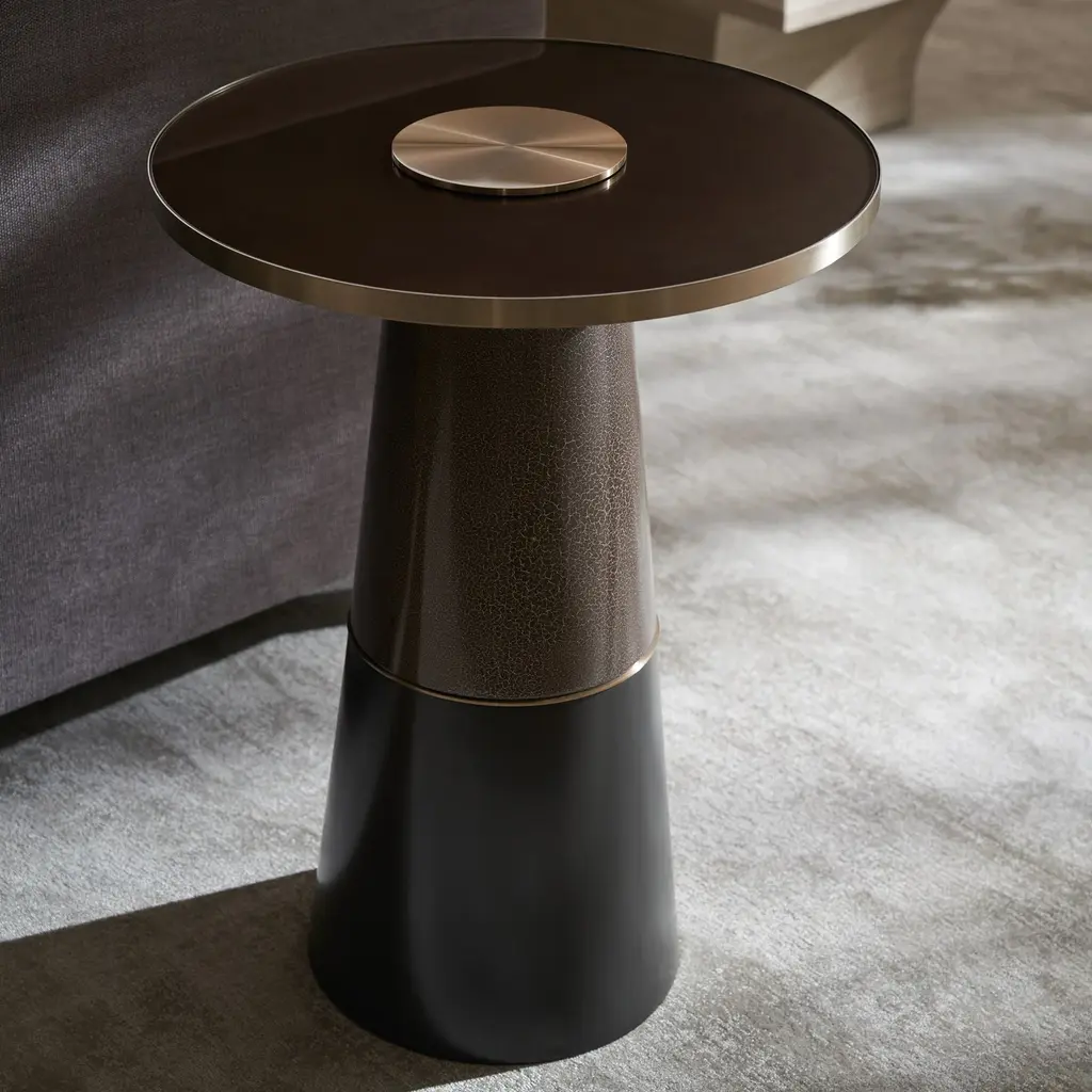 Unleash the artistic potential in your home with the Aperture End Table from Caracole. Its sleek silhouette and camera-inspired design, highlighted by a Forest Craze crackle finish and smoked bronze glass top with metallic accents, exudes sophistication. Perfect for creating a captivating aesthetic and complementing any space, this compact side table is great for holding cocktails, a vase of flowers, or your favorite portable lamp. Highlights