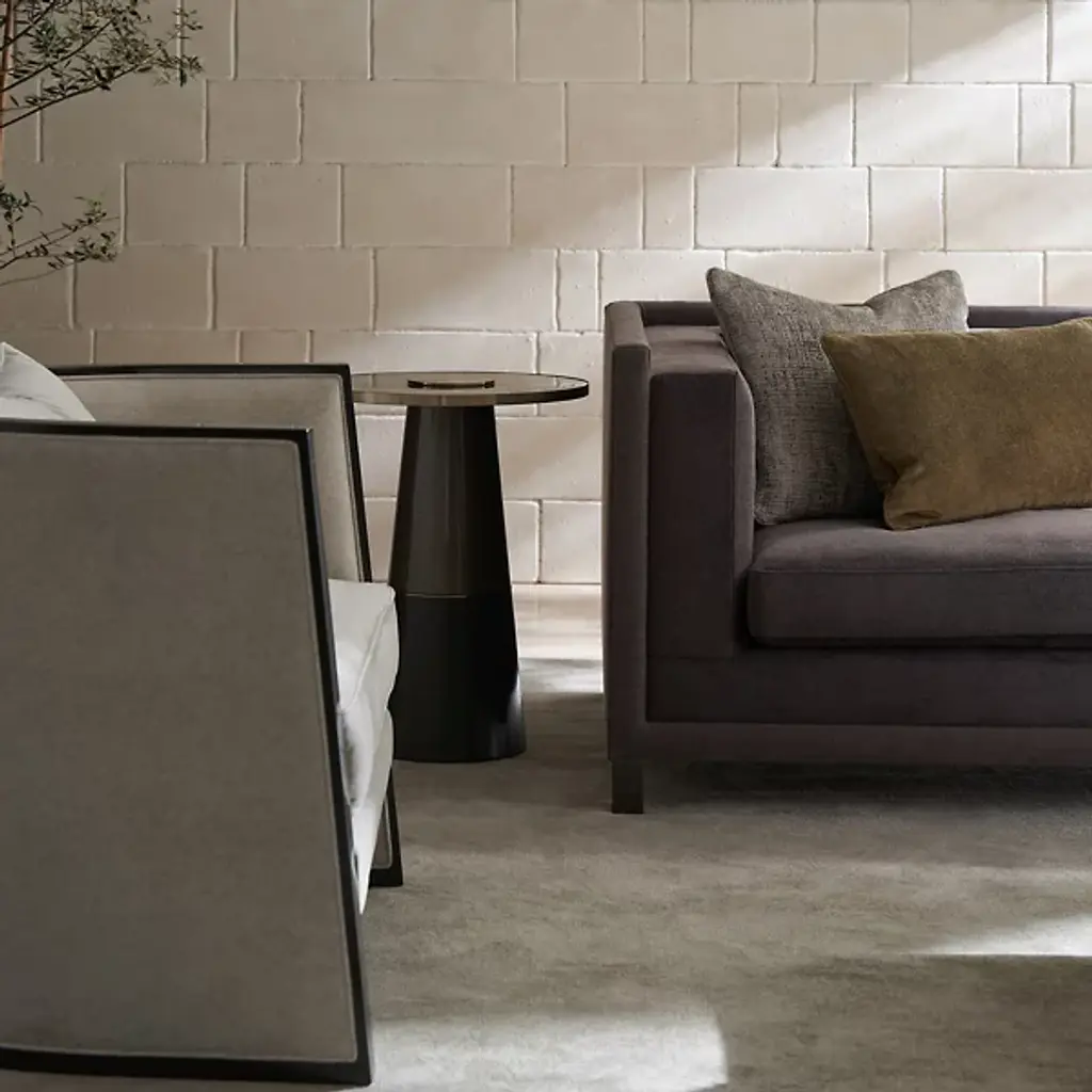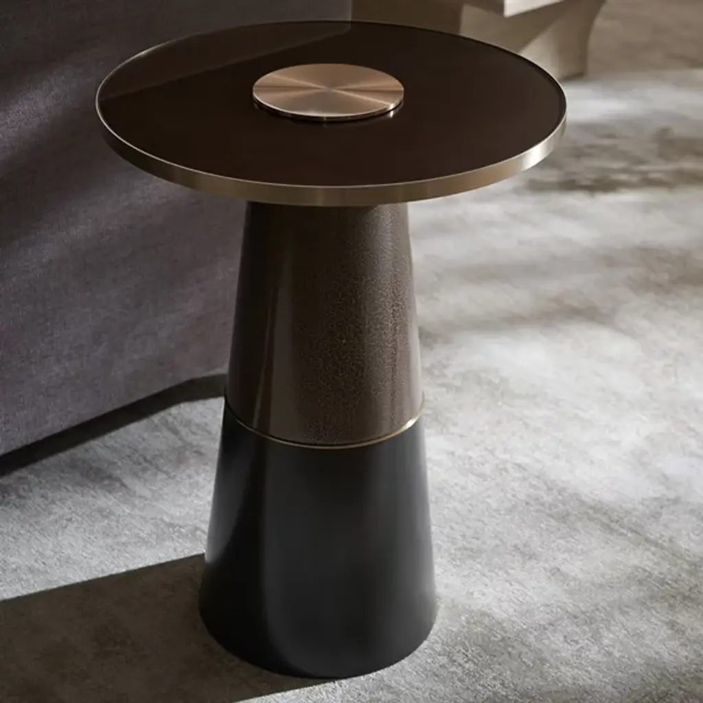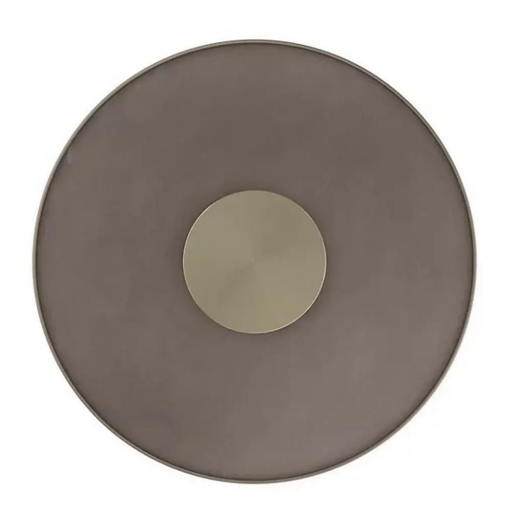 The Aperture Table from Caracole enriches living spaces using a layered contemporary design with luxurious detailed elements. Ascending from a conical base divided into two zones with slender metal accents, it supports a glass disc top framed in metal. The central circular accent provides an inspired element of contrast, standing out elegantly from the inset tabletop. The crackle finish provides a lasting bit of detail contrasting with the broader, low end of the base, transforming its surroundings with delightful simplicity.