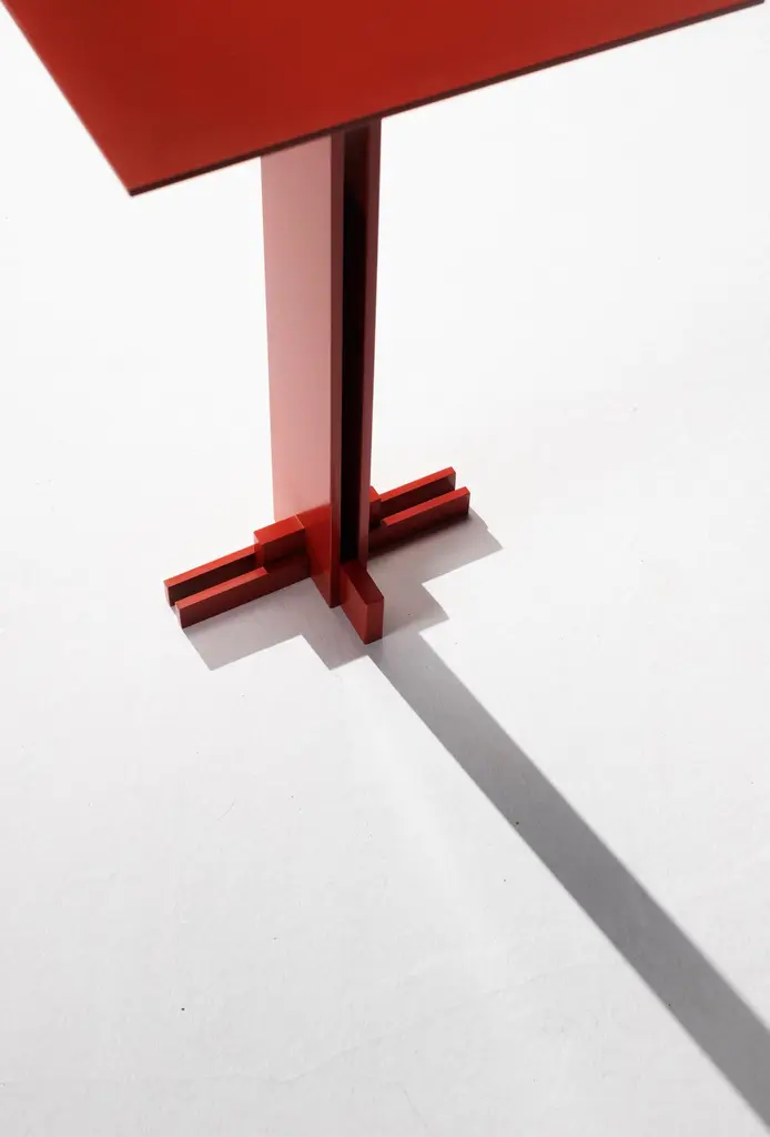 Apex Side Table, Handmade Metal, Modern Look In Red