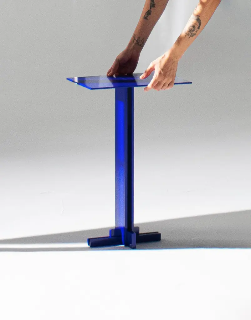 Apex Side Table, Handmade Metal, Modern Look In Ultramarine Blue