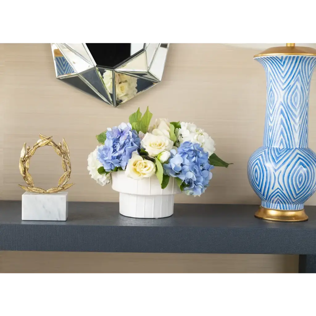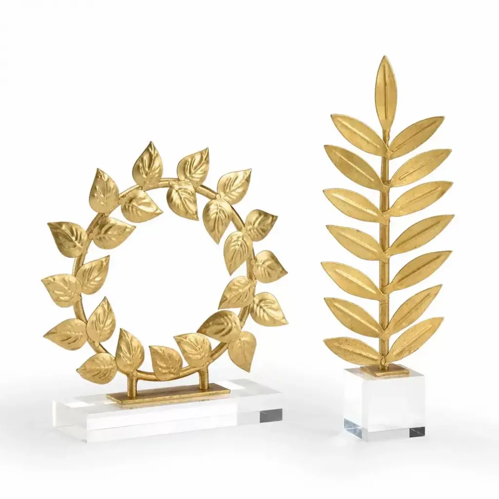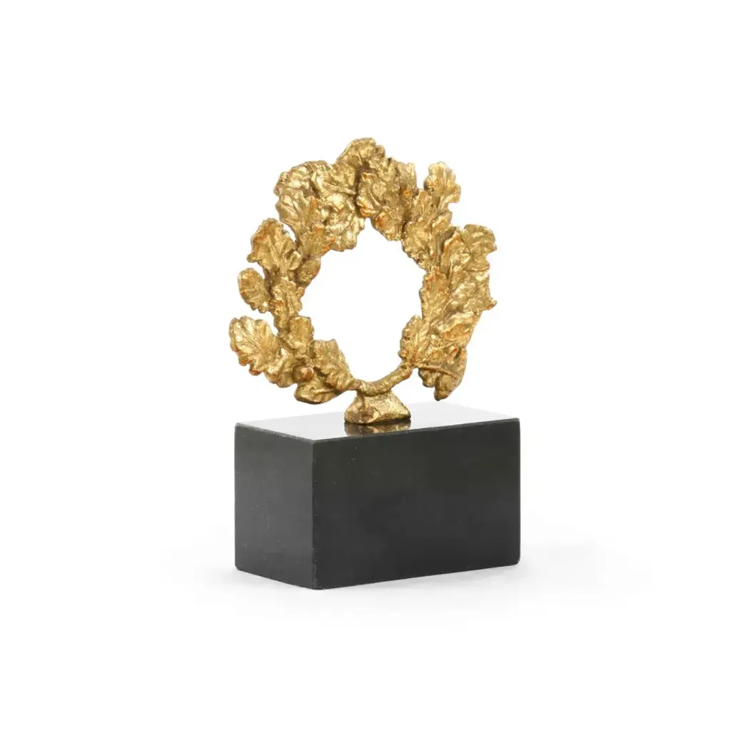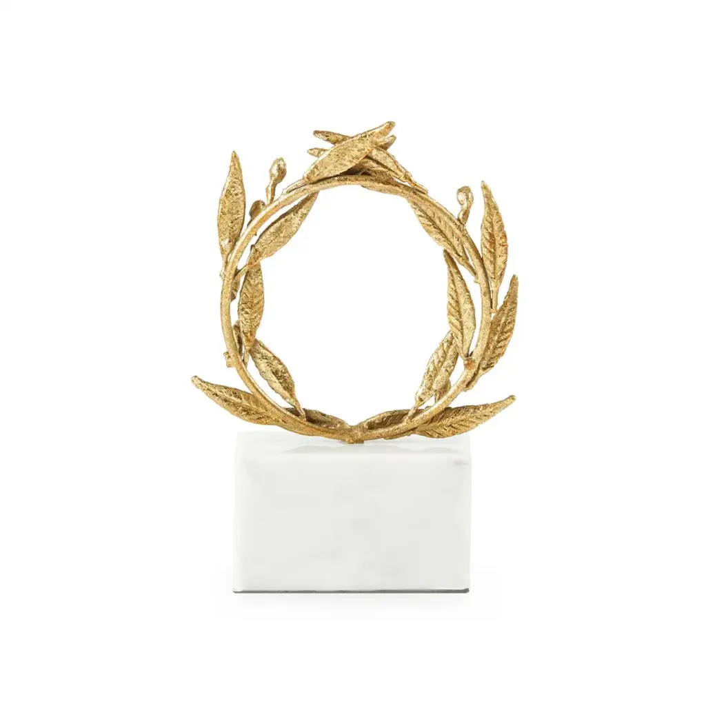 The Apollo Statue is an abstract circlet of gold-leafed laurel leaves atop a glossy marble base. It resembles the victory wreath from the ancient Olympic Games. The Apollo makes for a prefect award, or when used as a pair, for bookends. It's also stunning as a decorative object gracing a side table or etagere.