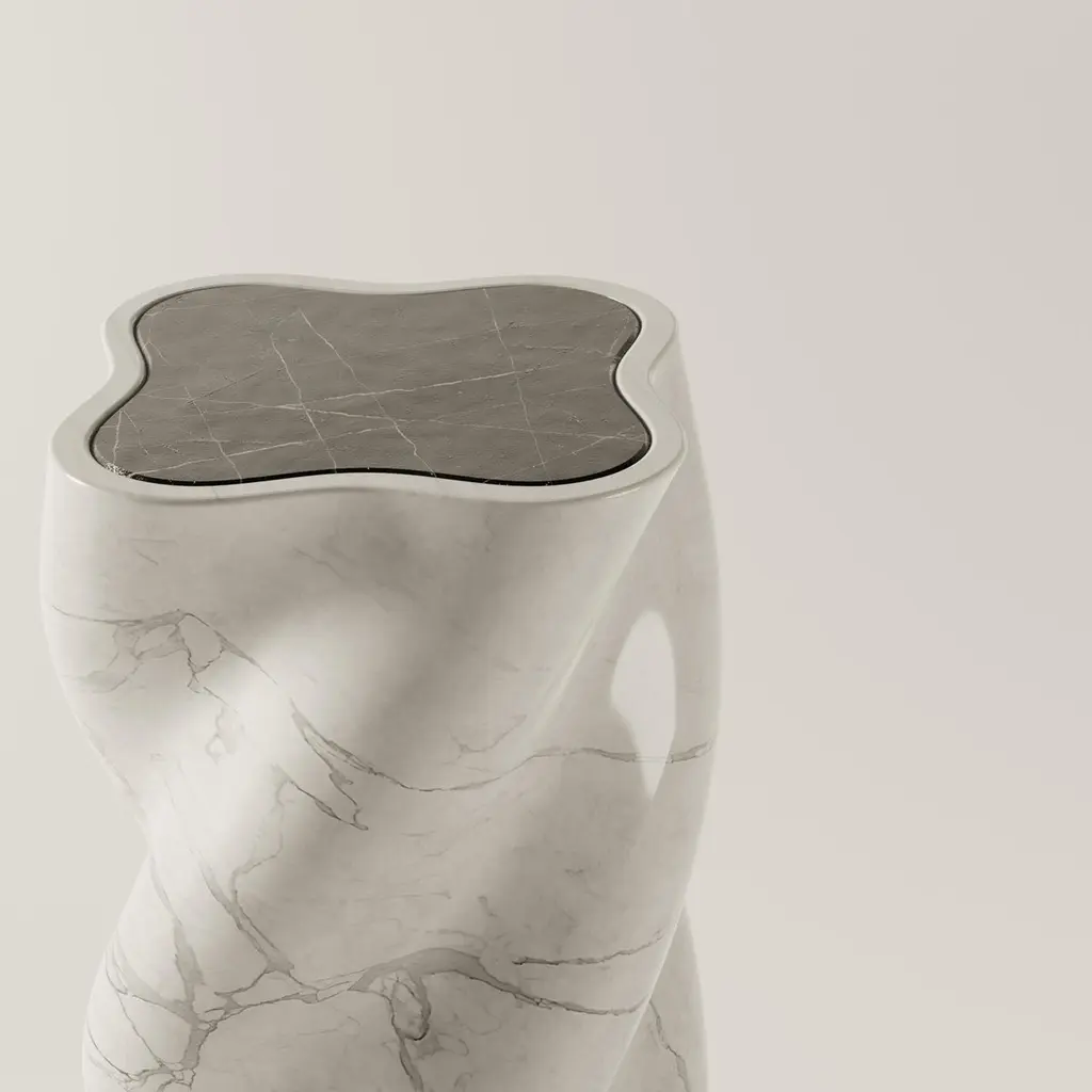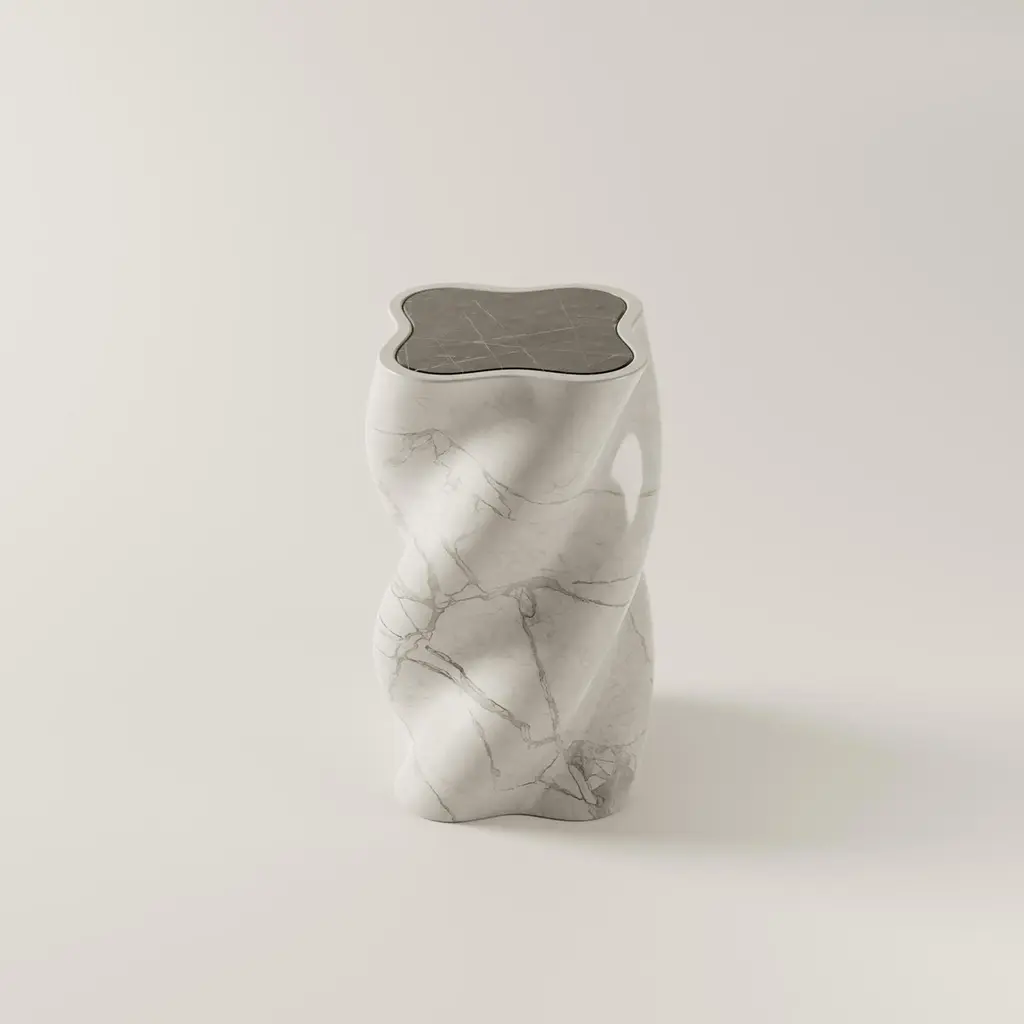 Clean lines, simple geometry and strong materiality are the main features of BURGIO's U line. The fUUUUsillo accent table takes cheeky inspiration from Southern Italy's beloved fusilli pasta shape. Handcrafted from three stunning European marble types, the base is carved from a single block so the veining flows seamlessly over and around its pasta-inspired curved edges. tAAAble is currently available in the following three colour options:Arabescato + Nero Marquina: exquisite and highly sought after Italian stone, characterized by its beautiful white background and distinctive grey veining + black marble topNero Marquina + Arabescato : pitch black bituminous limestone with white veining, extracted from the region of Markina, Basque Country in the North of Spain + white marble topRojo Alicante + Nero Marquina: a warm, rich, earthy red marble with striking white and gray veins, quarried in Spain + black marble topItalian design tradition with a modern twist; aesthetic & functional. Founded by Isabella Burgio and Alireza Sadeh in January 2022, BURGIO sits at the intersection between design & functionality: colour, texture and form. Isabella and Alireza's practice is all about integrating playfulness into the creative process as well as the final product, caring deeply about the whole process, from design to production and actively sourcing the best partners to bring their concepts to life.