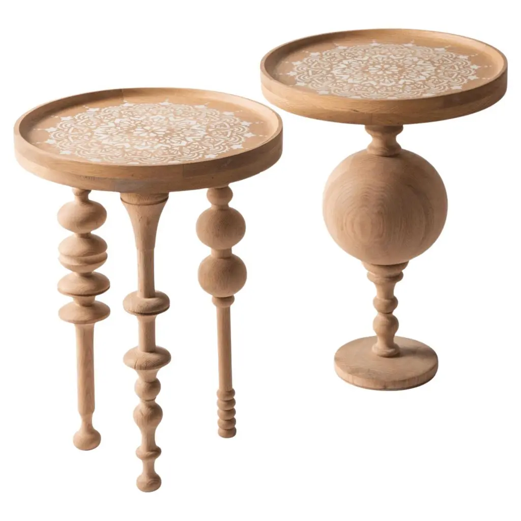 Arabesque-Inspired Oak Wood Side Table With Resin Top - Large