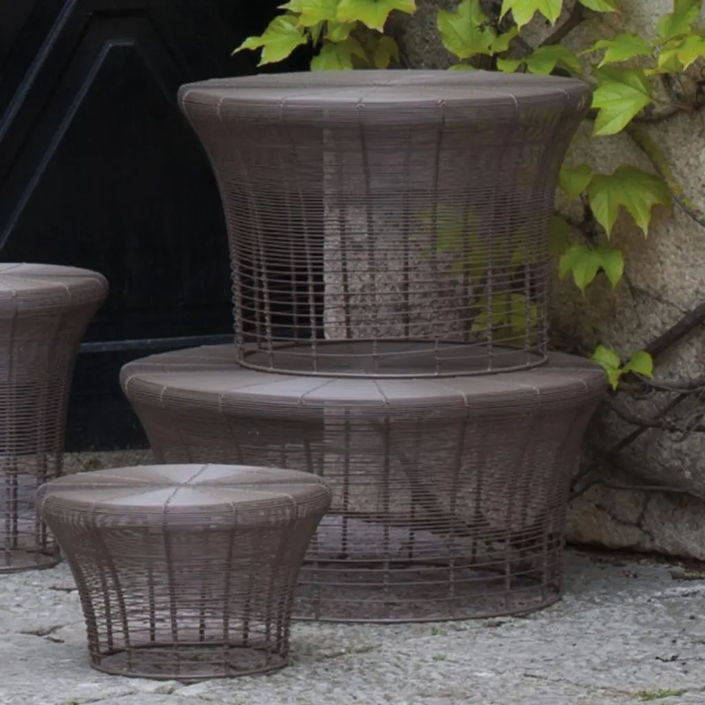 The Aram High Table is a wireframe-designed outdoor accent table inspired by India artisanship. Each Aram Table is uniquely handcrafted from stainless steel wire, rendering each design distinctive. Easily adaptable to any design scheme, the Aram collection looks chic with 2-3 tables layered together with differing heights and colors. Features