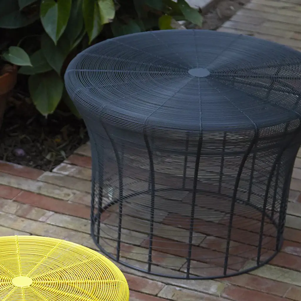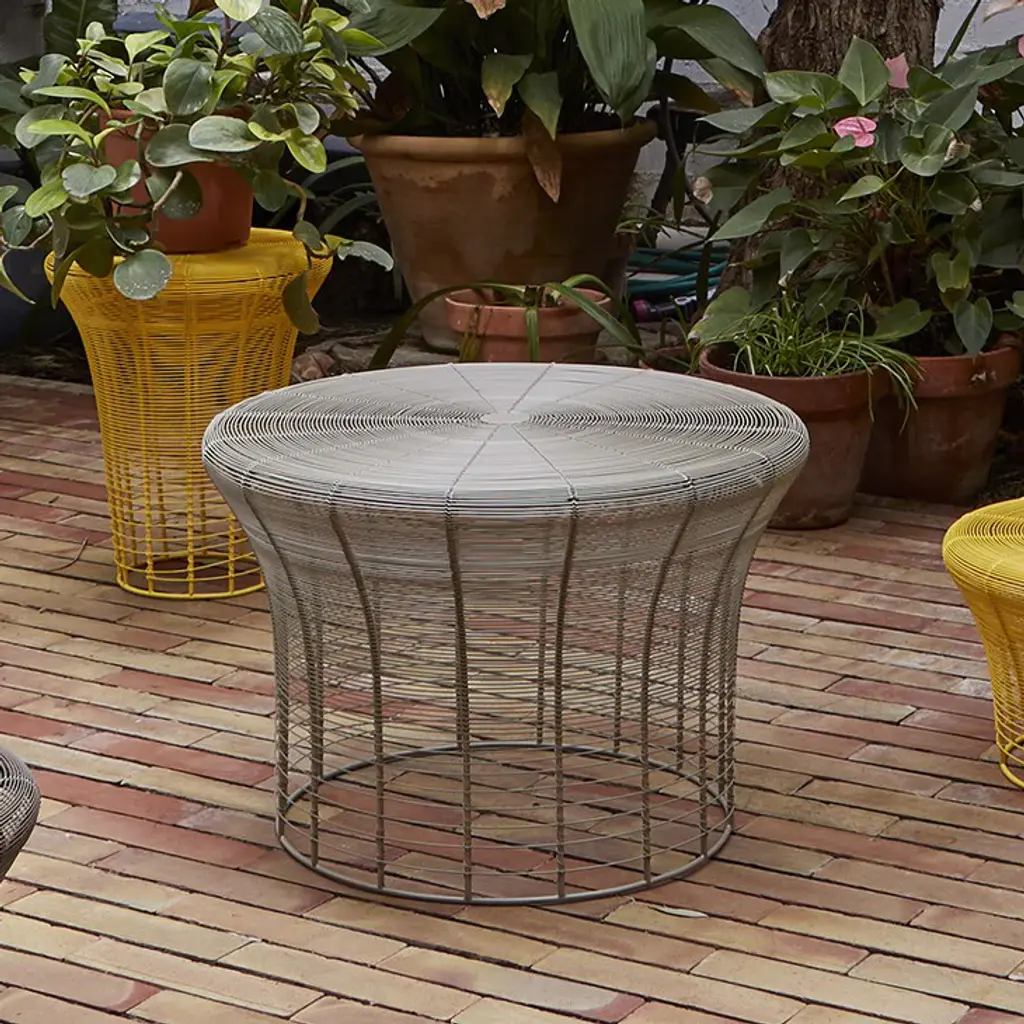 The Aram High Table is a wireframe-designed outdoor accent table inspired by India artisanship. Each Aram Table is uniquely handcrafted from stainless steel wire, rendering each design distinctive. Easily adaptable to any design scheme, the Aram collection looks chic with 2-3 tables layered together with differing heights and colors. Features