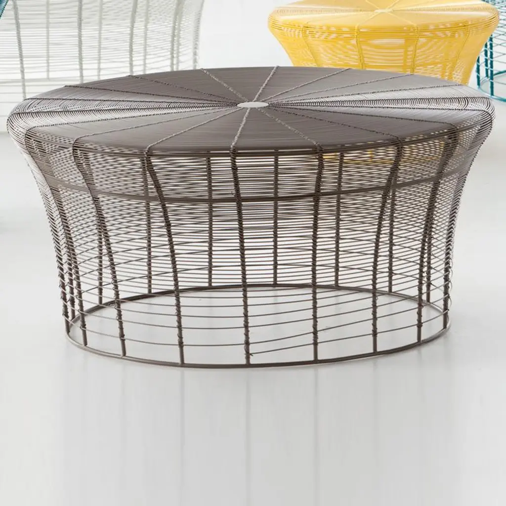 The Aram Low Table is a wireframe side table inspired by artisan design in India. Suitable for indoor or outdoor use, each Aram Table is handcrafted using stainless steel wire, rendering each piece totally unique. Easily adaptable to any design scheme–contemporary coastal, bohemian, transitional, or eclectic–the tables can be combined together at different heights and varying colors to create a beautiful, layered space. Features