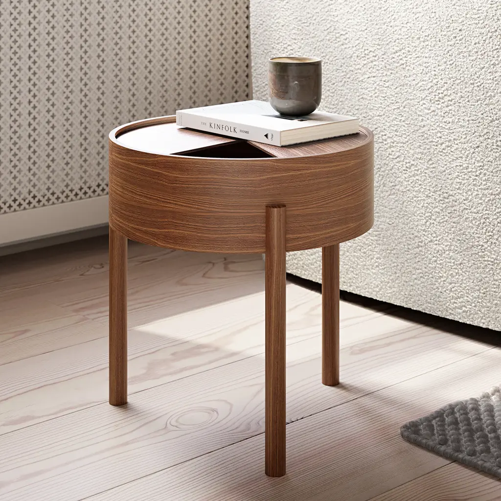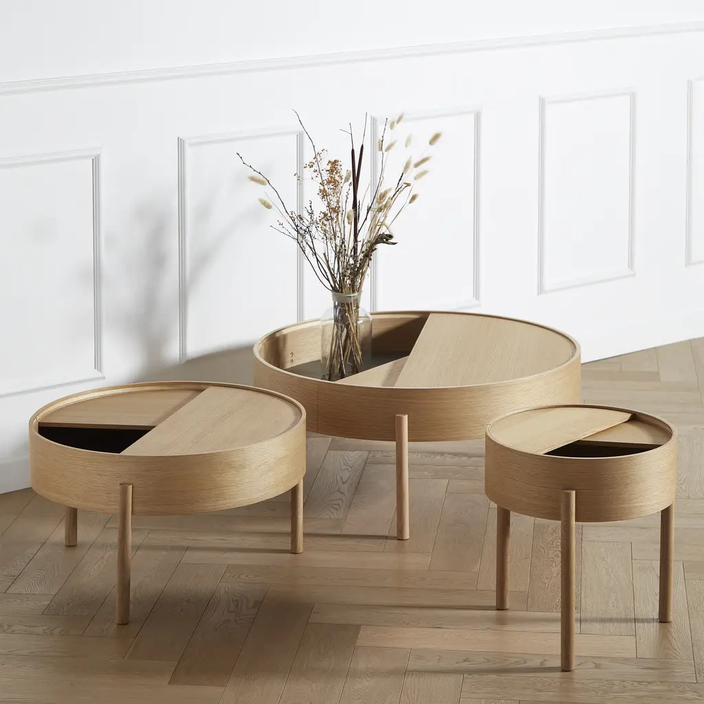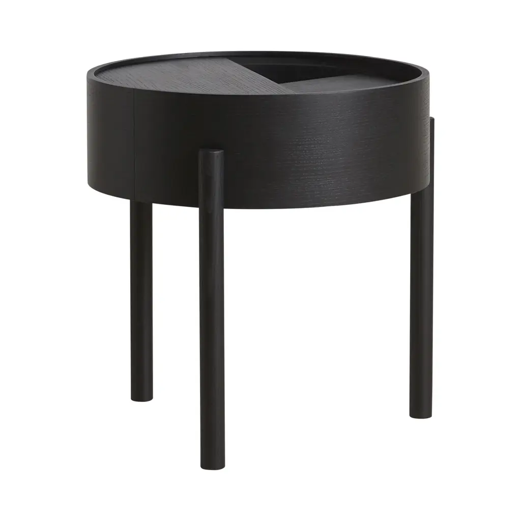 A dynamic surface ready for both display and storage, the Arc Side Table from WOUD invites you to make use of its simple, yet playful design. Turn the upper tabletop from open to closed to show off your favorite objects, or hide things away deep within its ash wood construction. Highlights