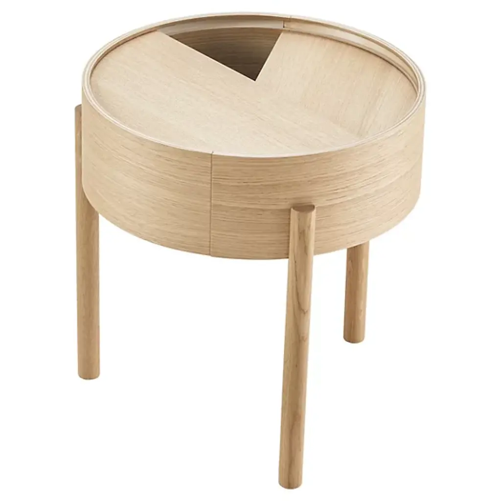 Presented by Woud and designed by Danish creatives Ditte Vad and Julie Beatrup, the Arc Side Table was fashioned in homage to the mathematical equation of a smooth curve joining two points in a circle. With versatile display options, the top of the table can be completely closed or opened at an array of widths to allow for décor or easy reach of items in use, while the trio of supporting legs adds a level of weightless charm.