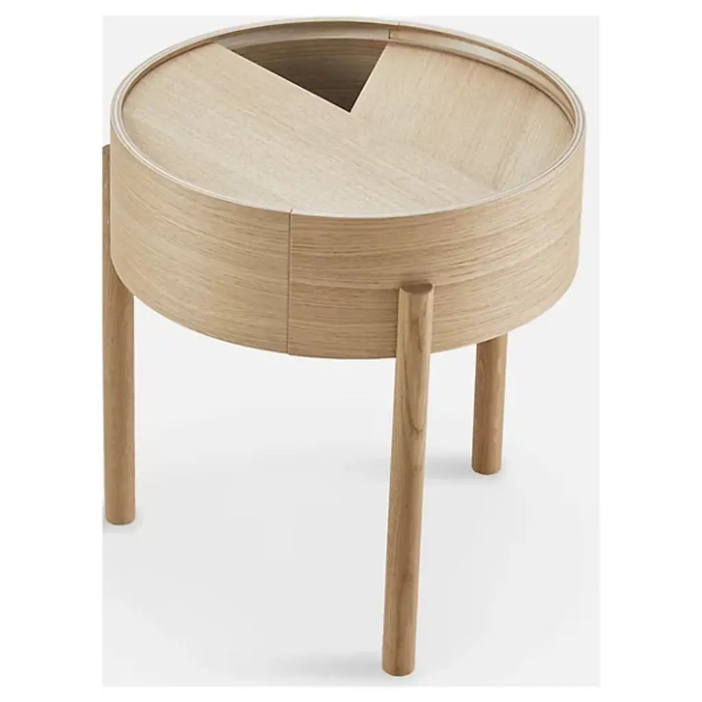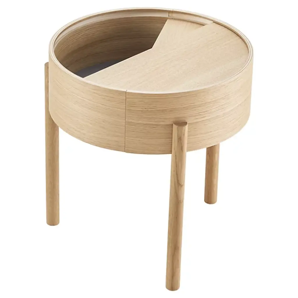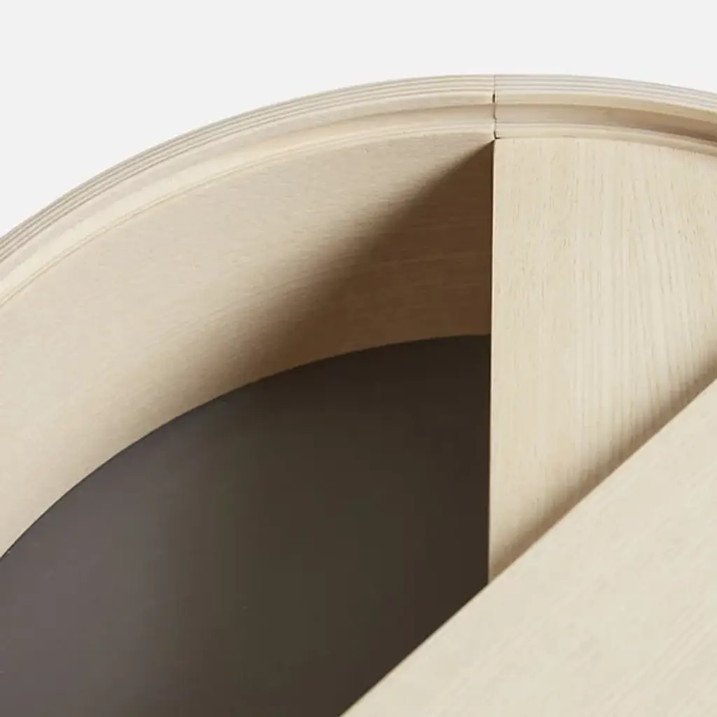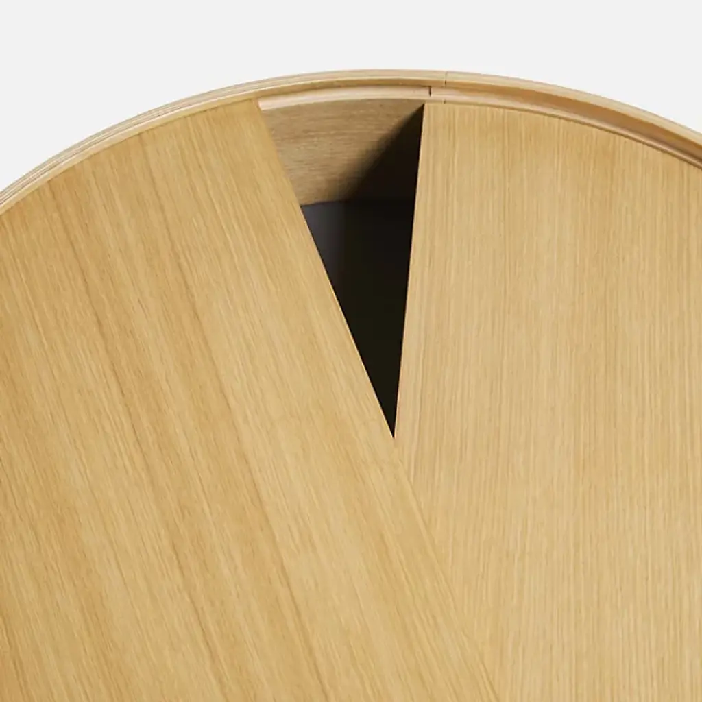 Presented by Woud and designed by Danish creatives Ditte Vad and Julie Beatrup, the Arc Side Table was fashioned in homage to the mathematical equation of a smooth curve joining two points in a circle. With versatile display options, the top of the table can be completely closed or opened at an array of widths to allow for décor or easy reach of items in use, while the trio of supporting legs adds a level of weightless charm.