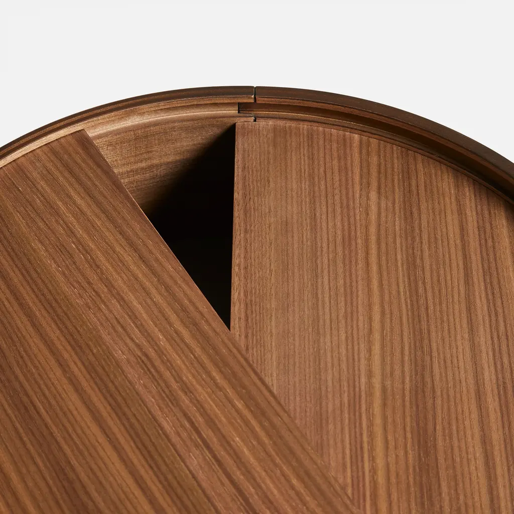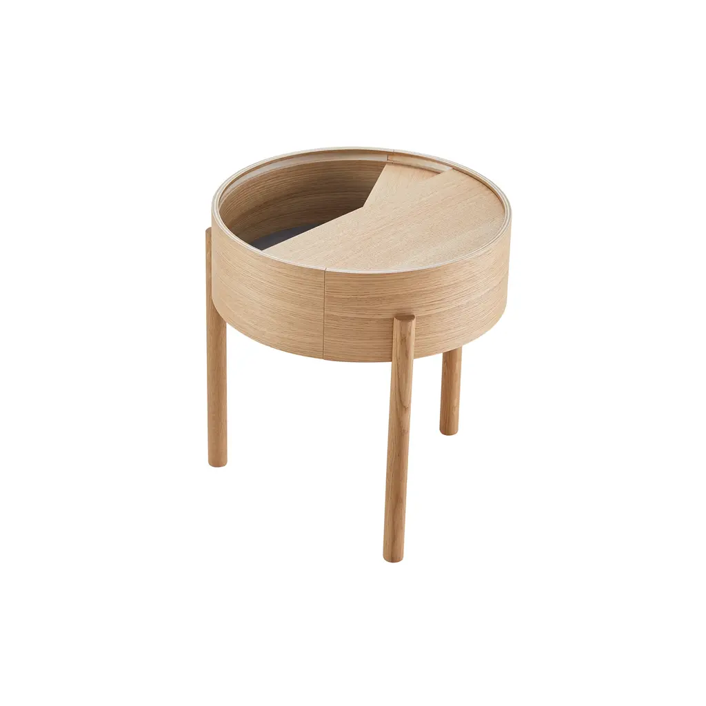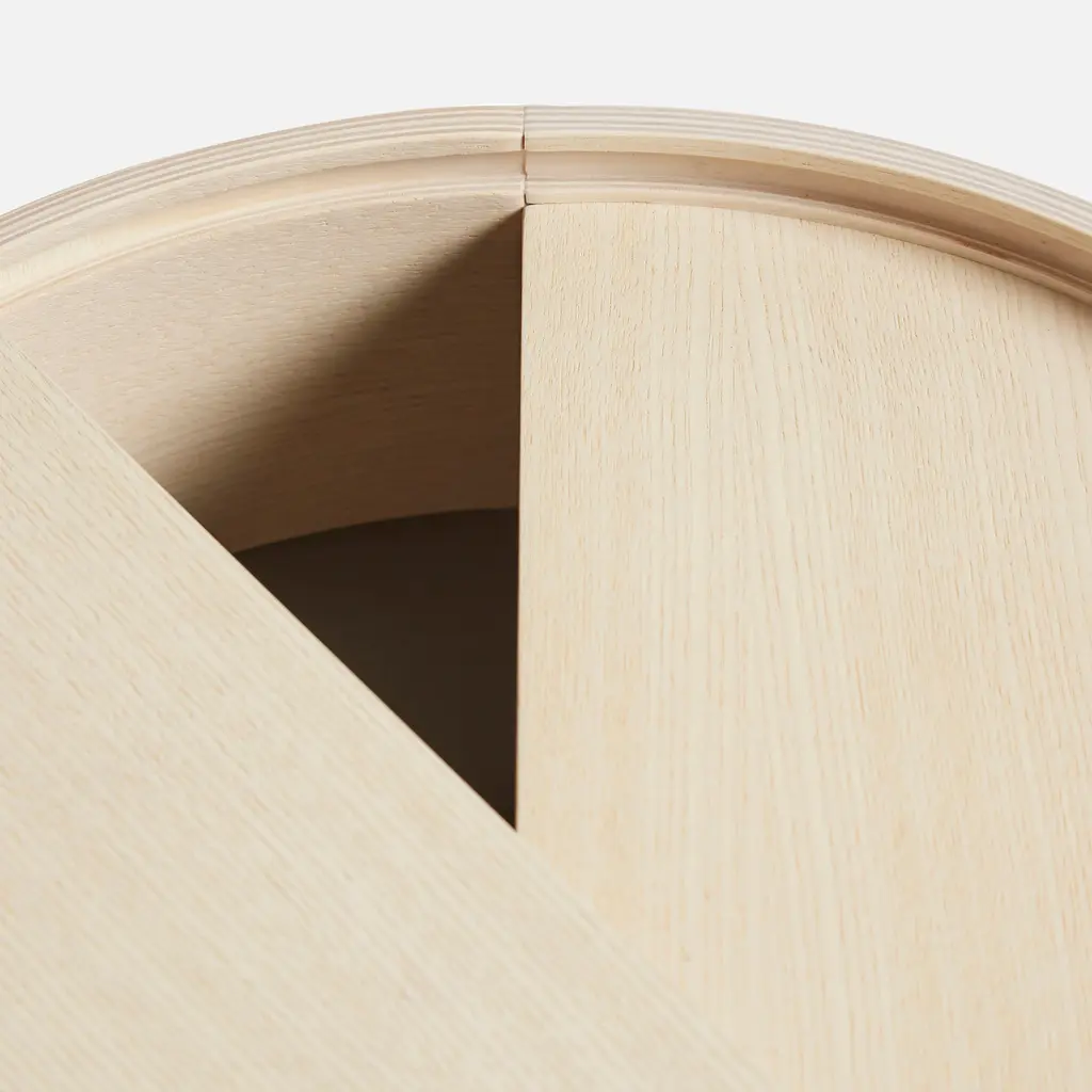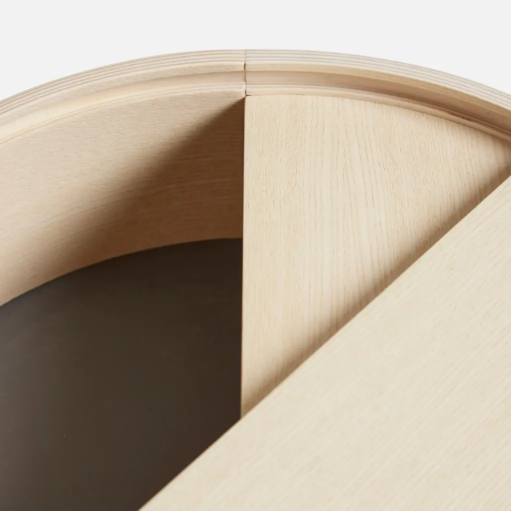 Designers Julie Begtrup and Ditte Vad wanted to create a stylish side table with a little something extra. Arc’s name alludes to the circular tabletop with a rotating section that reveals a hidden storage compartment. The inside surface is covered with a smooth nanolaminate to complement the ash wood and the 3-legged conceit adds a playful note.