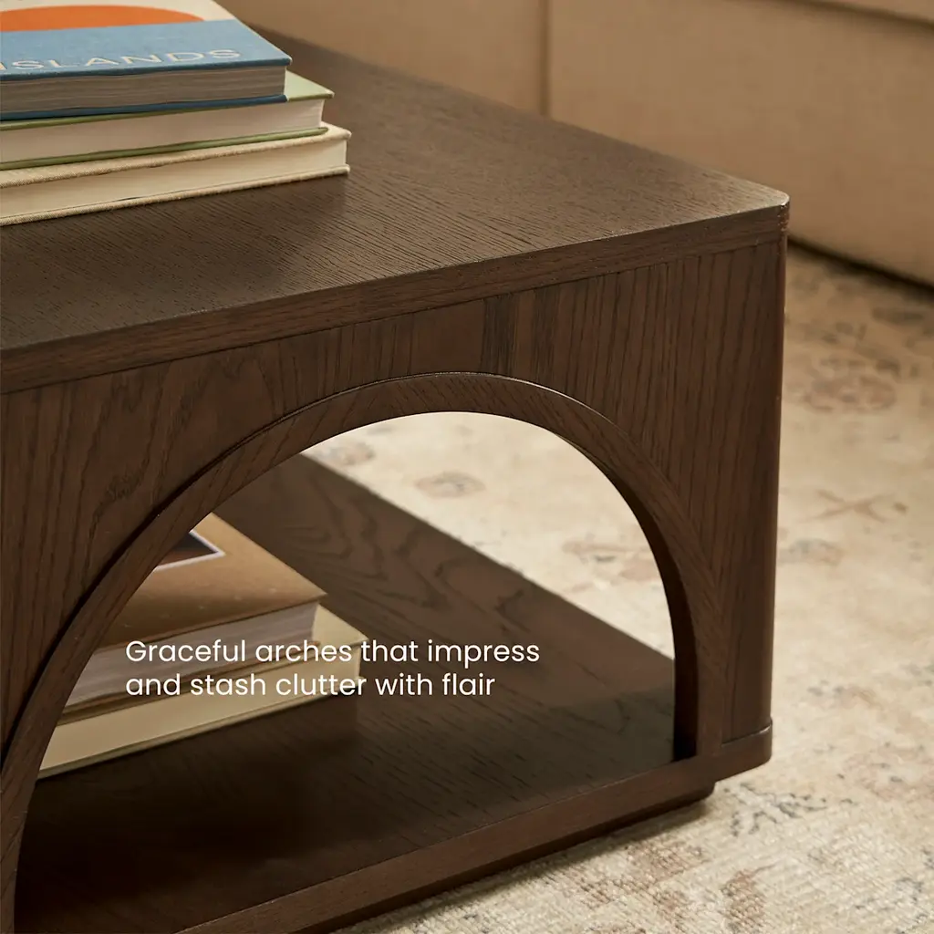 Arcadia's arched cutouts neatly tuck away magazines and books, leaving room for more—more drinks, snacks, and conversations when guests arrive.