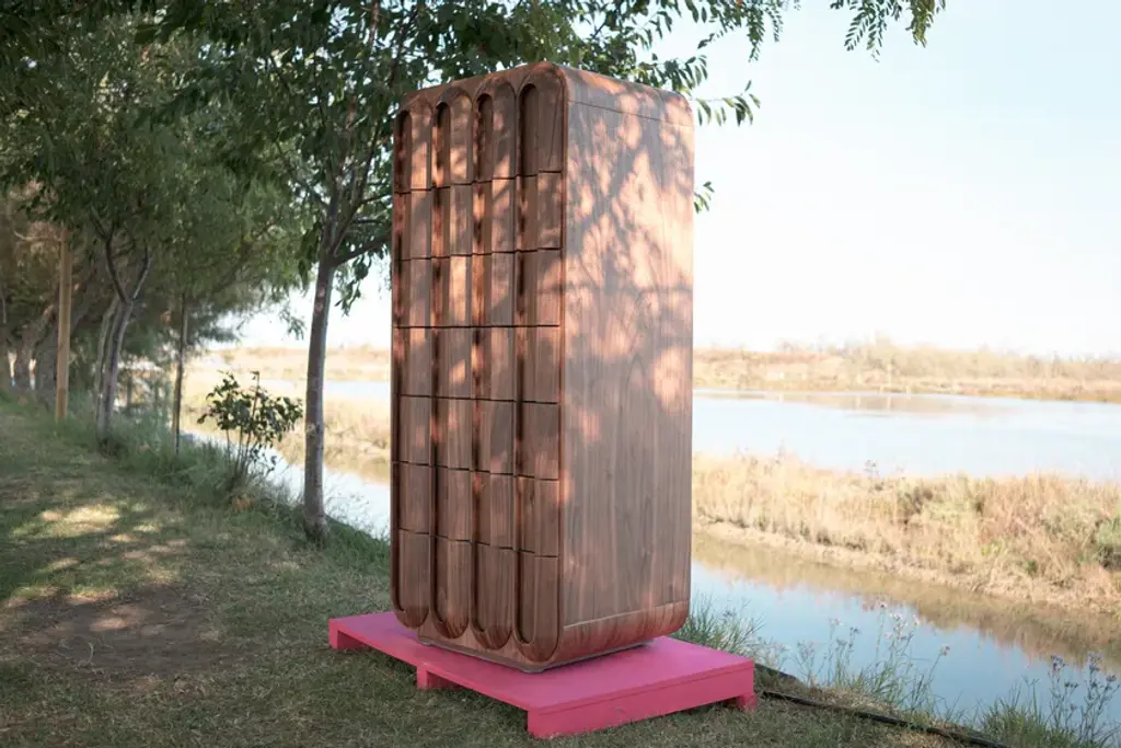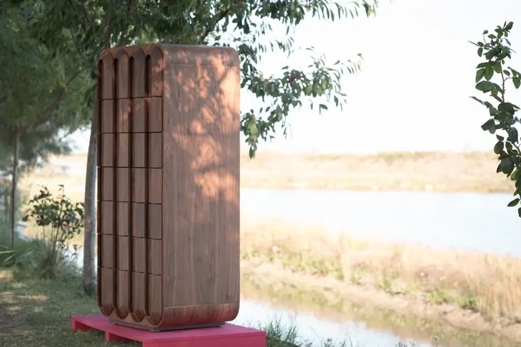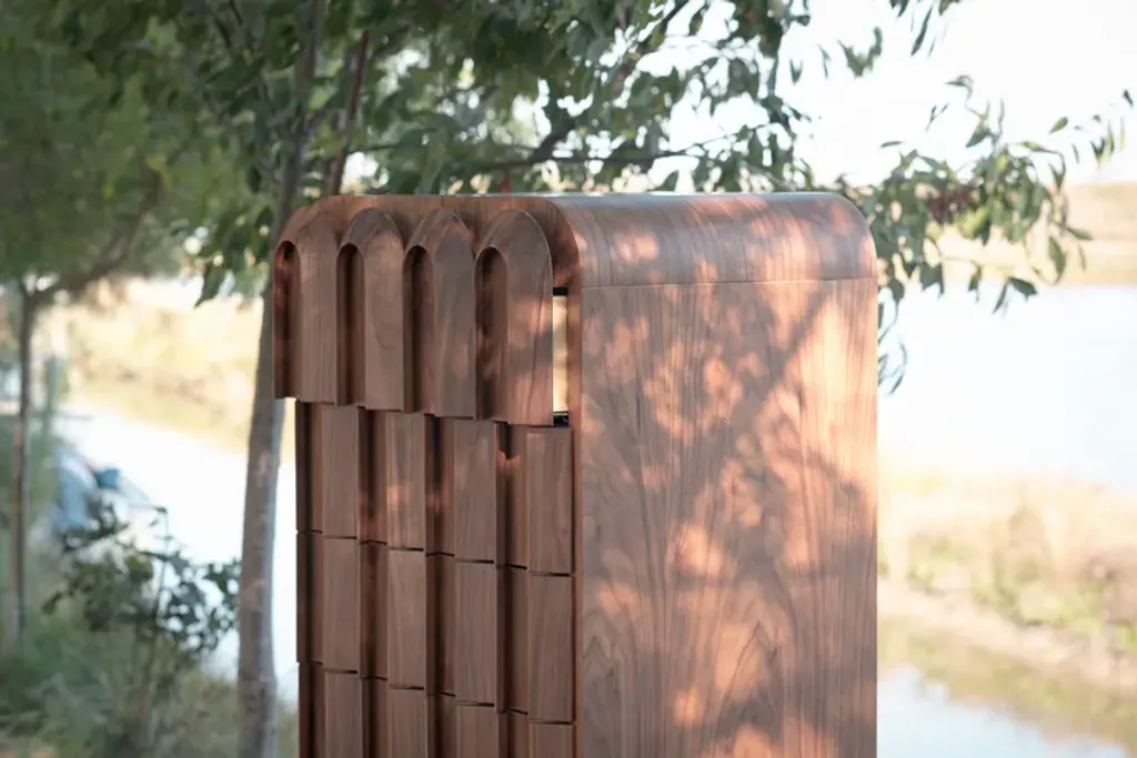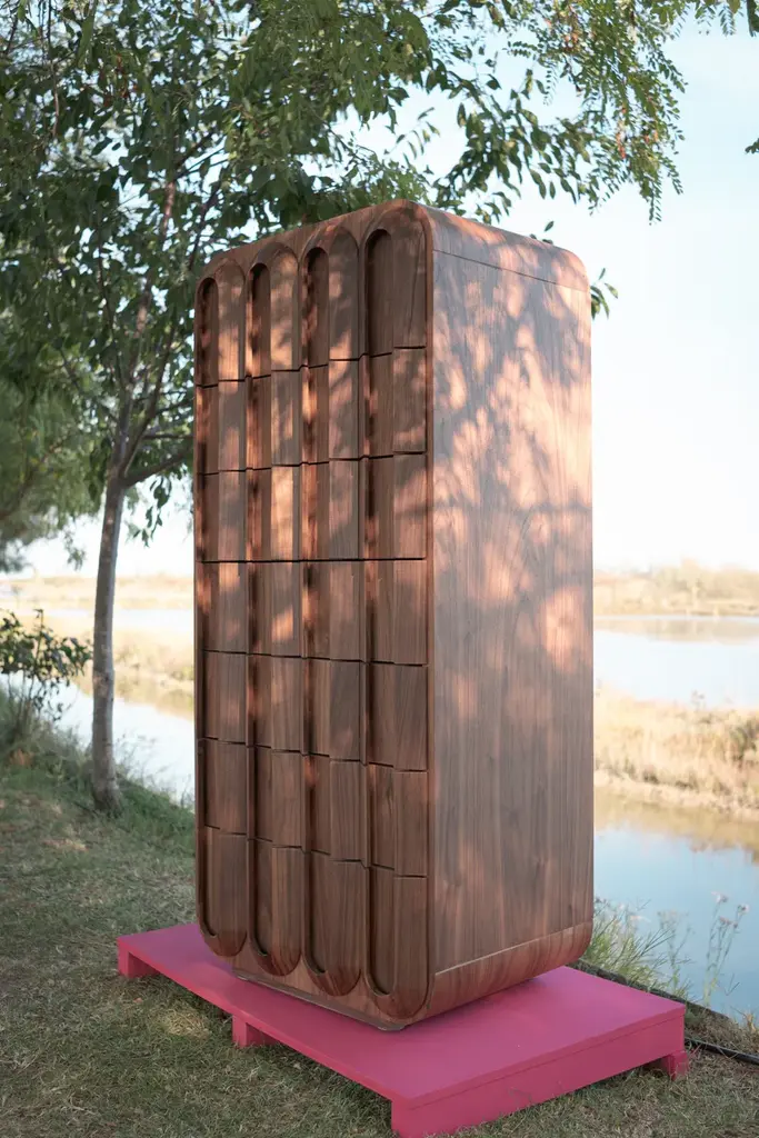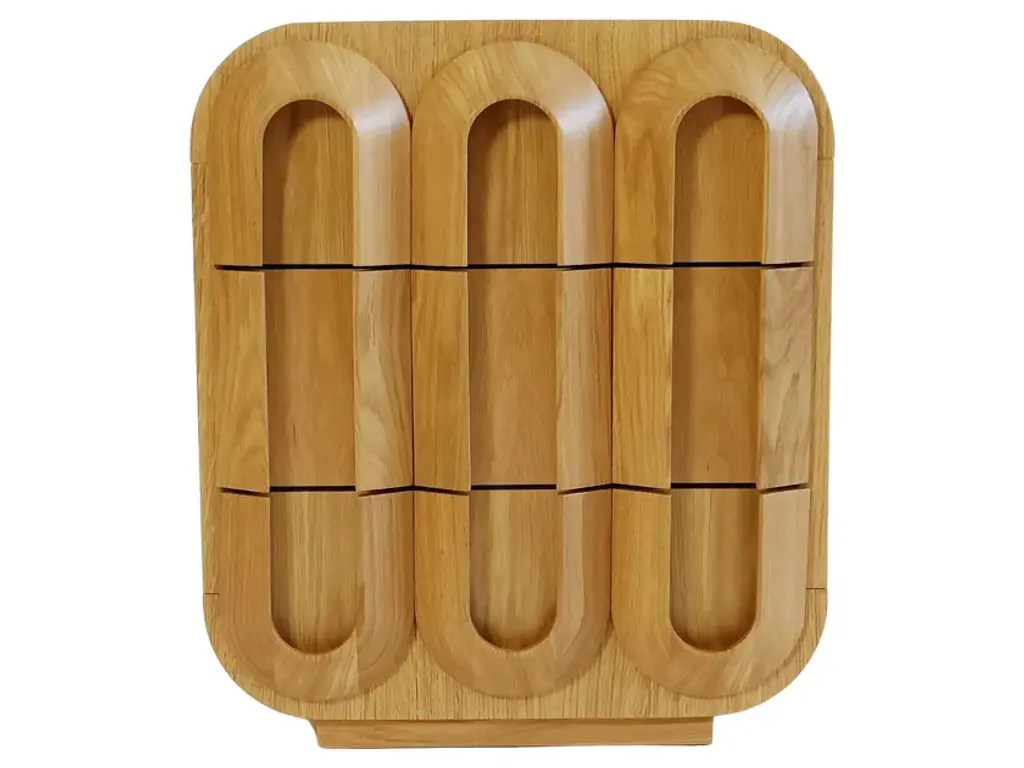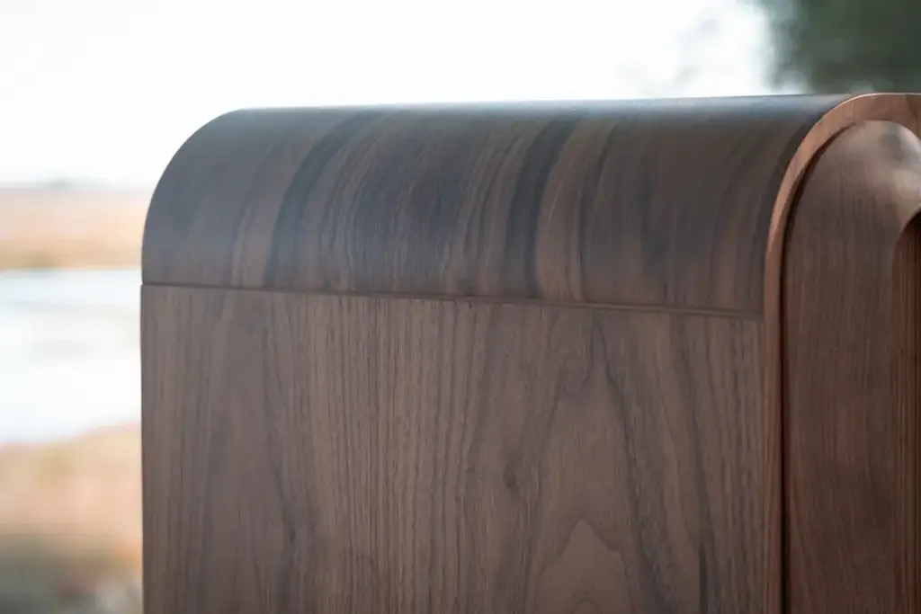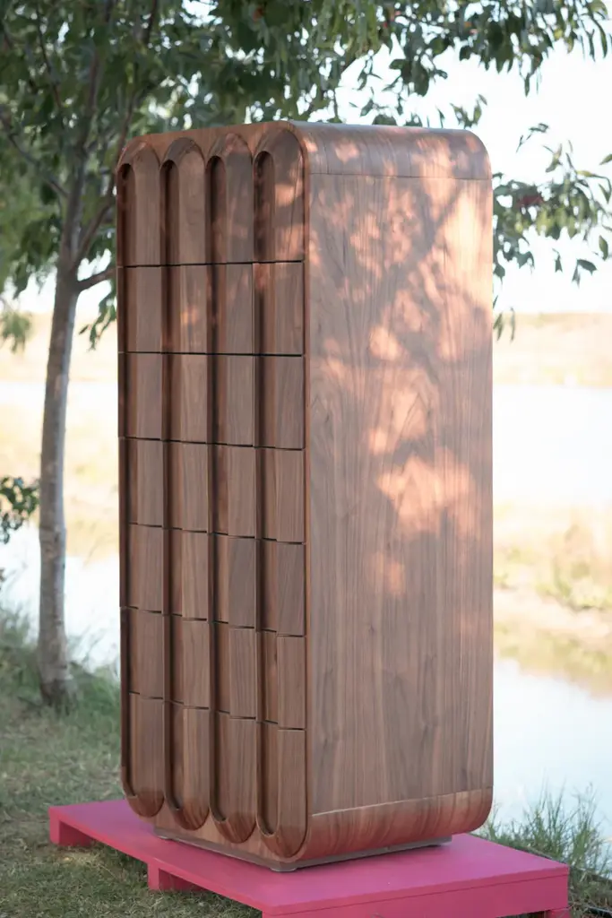 Arcate is a chest of drawers in solid wood with integrated handles.Santa Fosca church, the Torcello and Murano basilicas: in an austere architectural style, the refined lightness of the arches which follow on from each other at a constant rhythm. The smaller islands of the lagoon and its Romanesque buildings.The curved and straight lines, the solids and voids, the austerity and lightness; and, above all, the refined lightness of the arches which follow on from each other at a constant rhythm. The Arcate collection of furniture represents a stated homage to one of the essential architectural elements – the arch in its typical variation of Romanesque constructions, present in various areas of the Veneto region such as some of the smaller islands of the Venetian lagoon – consisting of seven-drawer chests, dressers and bedside tables. It is a family of furniture with vibrant surfaces and a strongly architectural vocation, designed by Milanese studio AccardiBuccheri –Mauro Accardi and Silvia Buccheri, architectural designers, designers and artistic directors of the brand – for MEDULUM.The constant alternation of a series of arches thus defines the geometry of Arcate: solid wood elements, skilfully milled with mastery of the manufacturing process, create a system of recesses and handles which mark out the surface, while remaining apparently invisible.The use of canaletto walnut amplifies the sculptural nature of these objects, emphasised by the particular design of the handles, which reveal a further, important characteristic: the presence of large drawers to emphasise the highly functional vocation of the collection.MATERIALSCurved plywood veneered, solid wood.FINISHES01. Oak02. Canaletto walnut03. Italian walnut04. Black painted open-pore ash