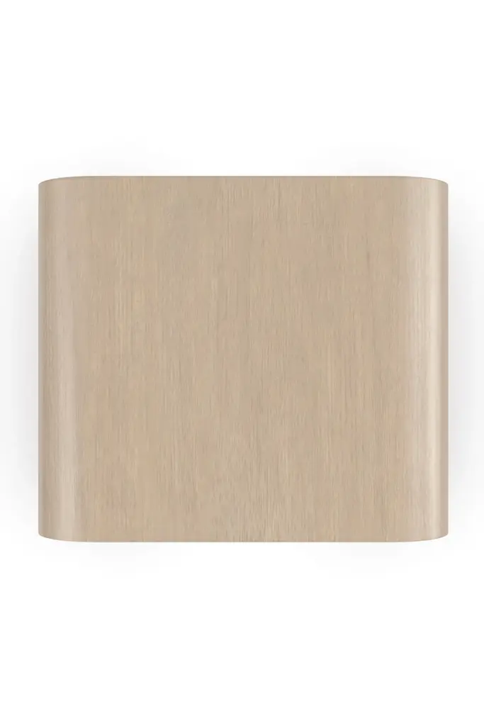 Sleek in its simplicity, this end table evokes a sense of calm and organic fluidity. Crafted in Sun Drenched Oak, its ample top gracefully waterfalls over either side. Semi-circular legs are finished in Textured Adobe for added tactile appeal and subtle contrast. Style in pairs to create movement and soften clean modern lines..