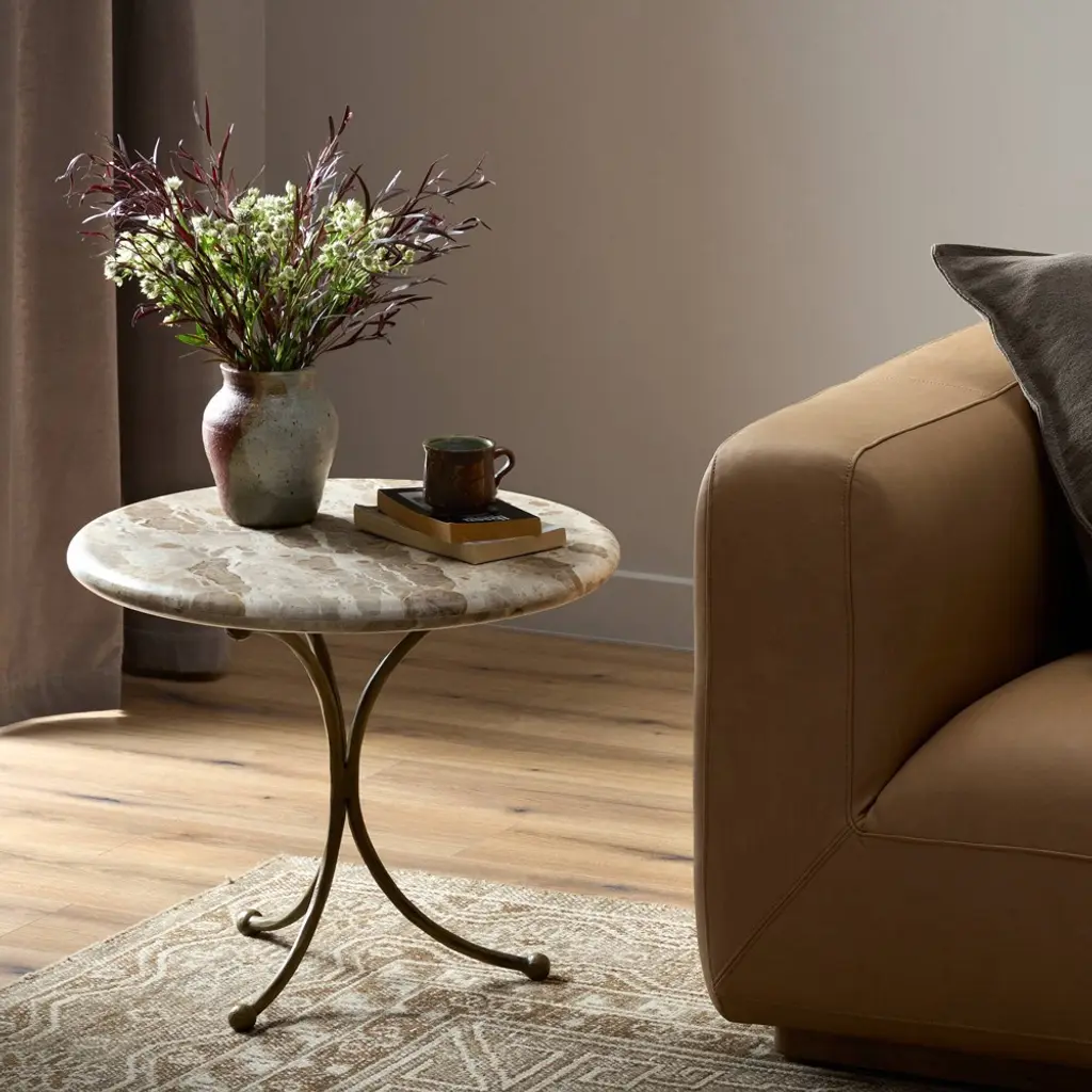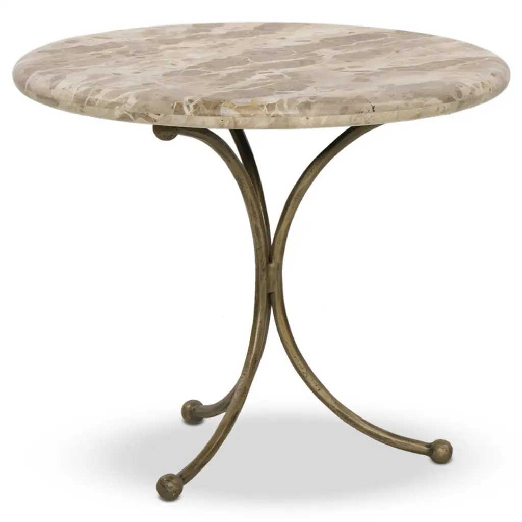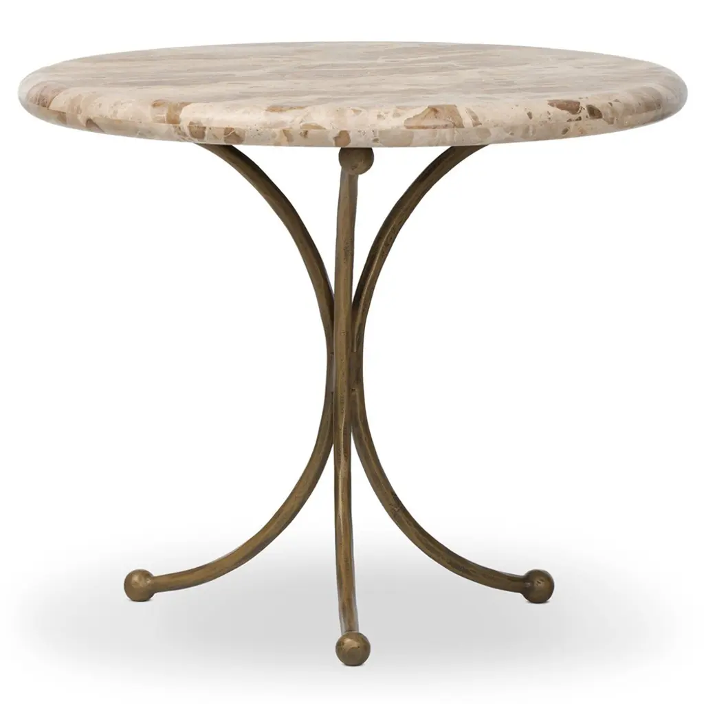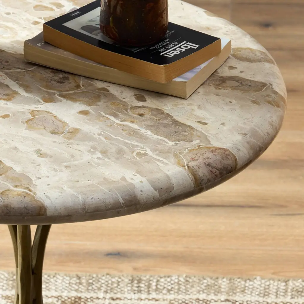 Archibald Updated Traditional Beige Marble Aged Brass Round End Table